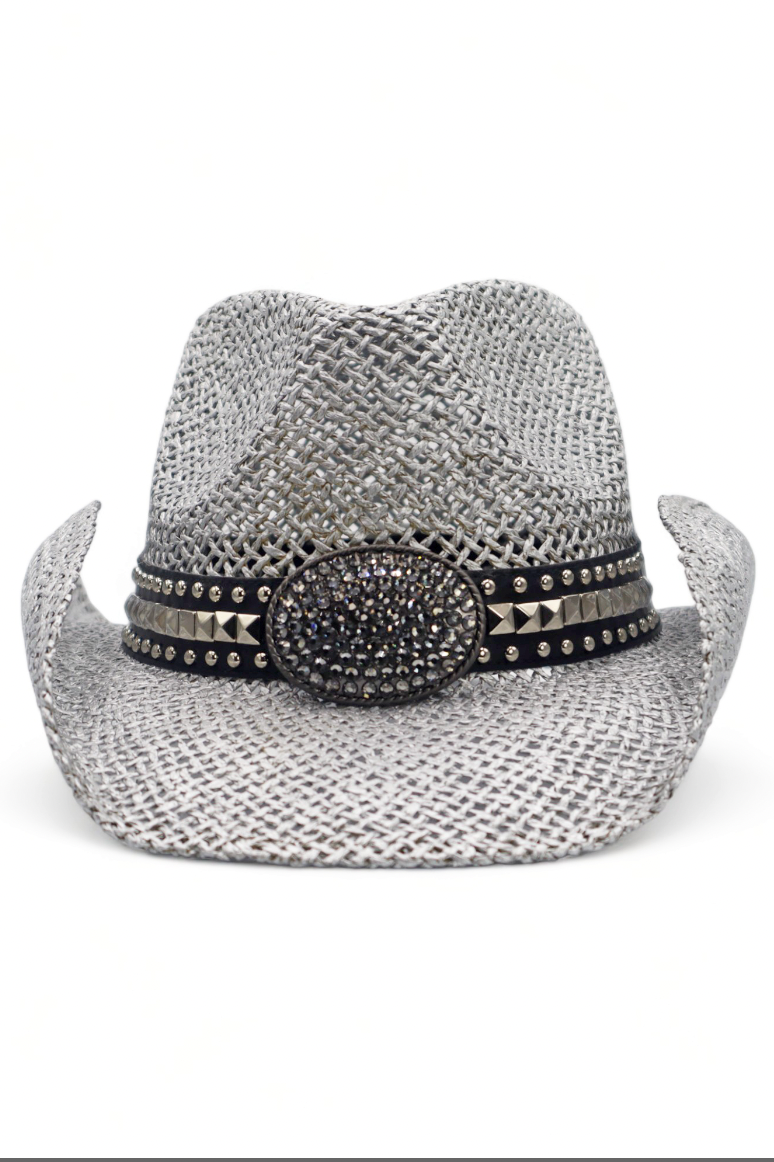 The Peter Grimm Gila Drifter Hat is unisex style and made from 100% Toyo Straw. This is a stunning and unique western style drifter hat in an eye-catching Silver. The studded band and buckle give this hat a truly glamorous look.
