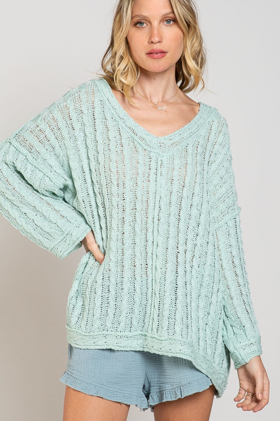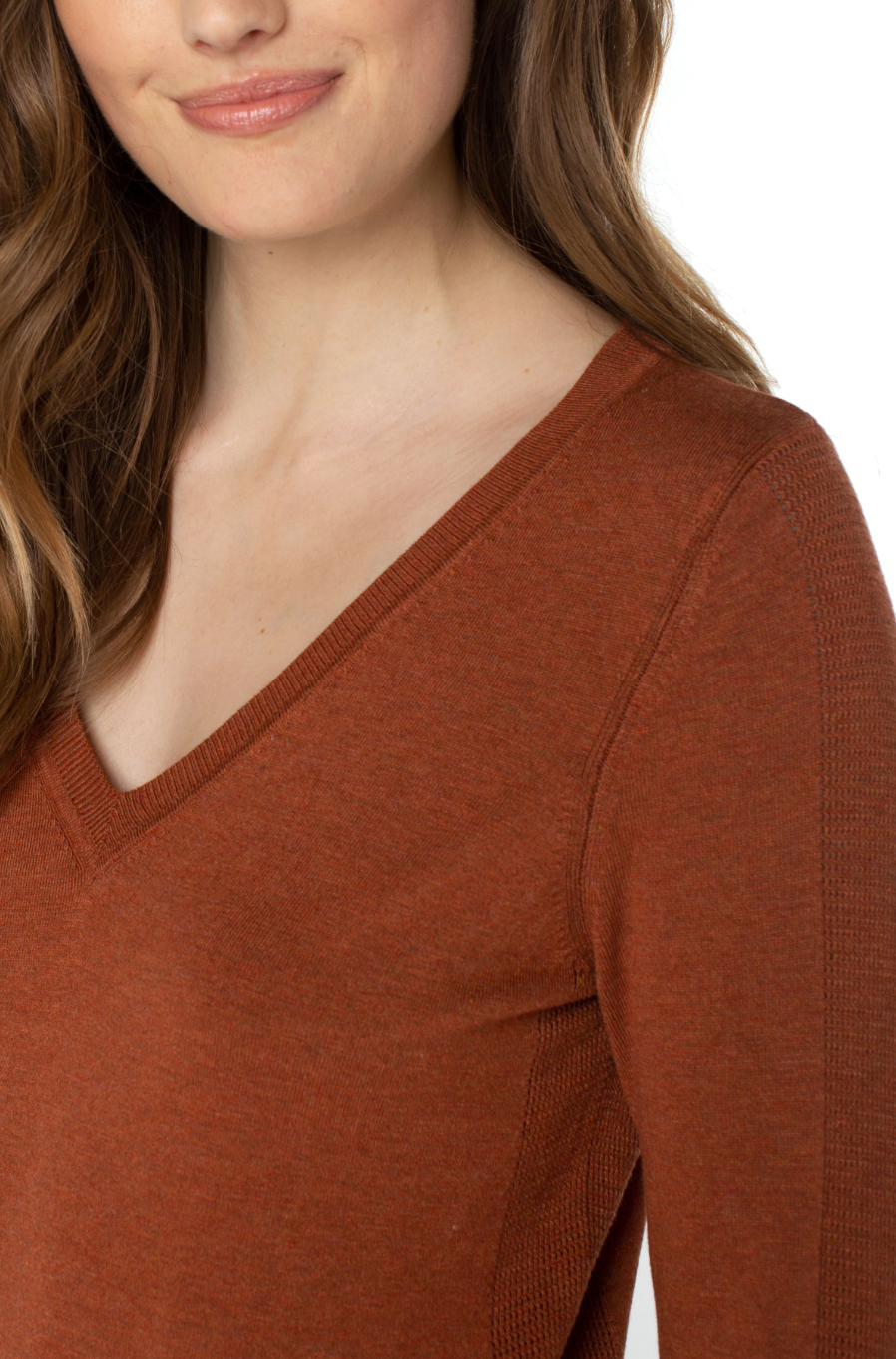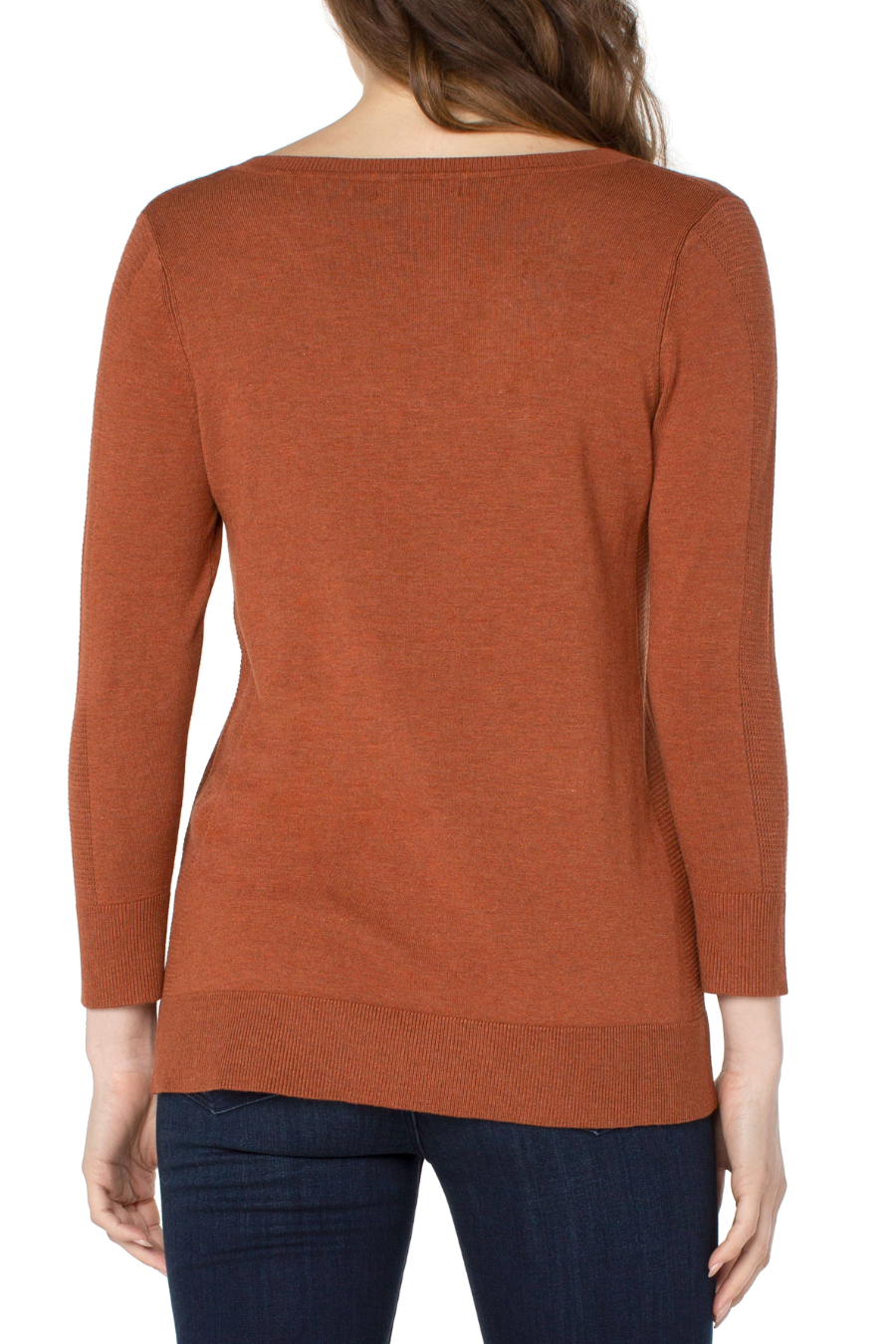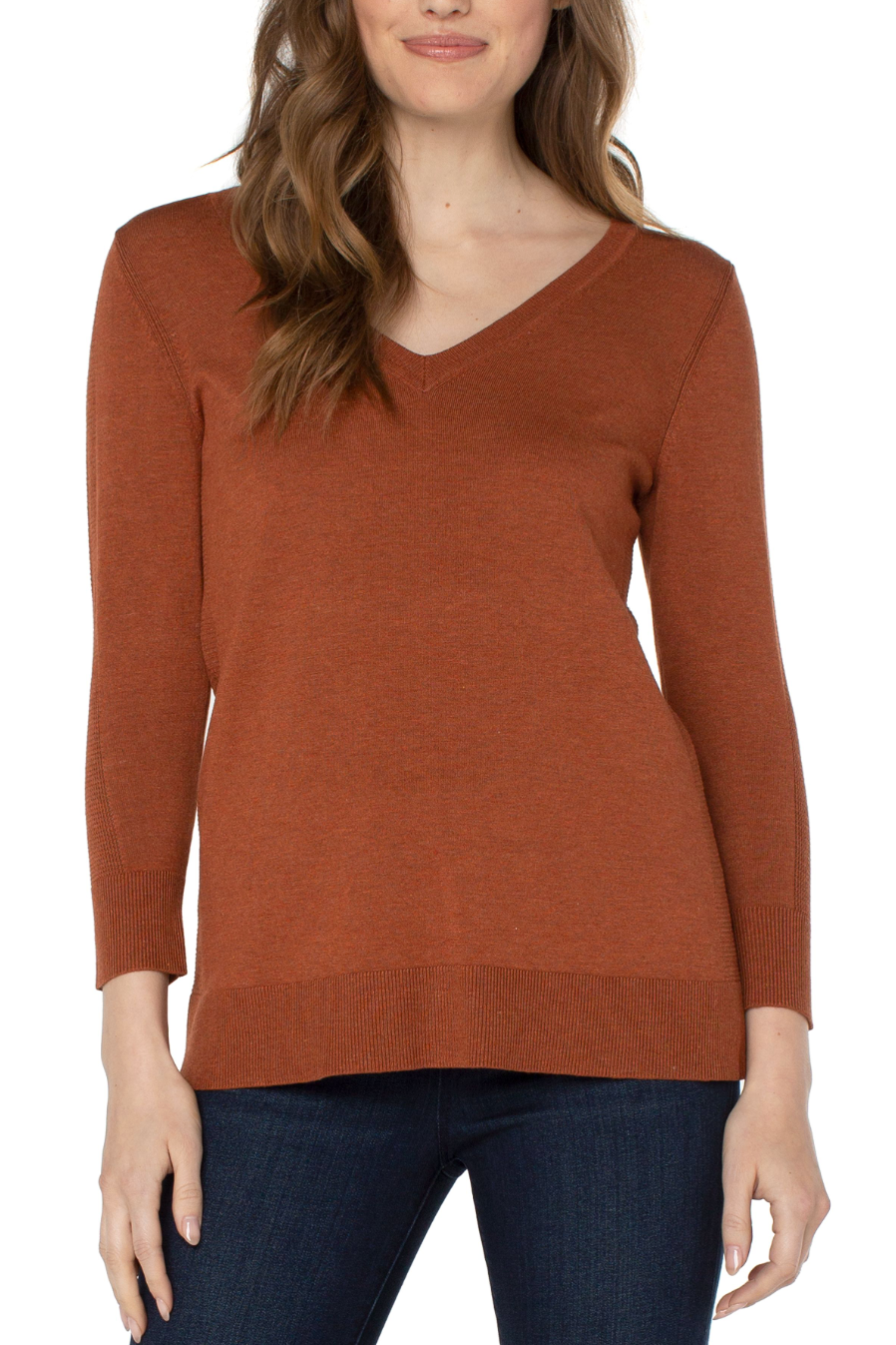 3/4 Sleeve V-Neck Sweater w/ Pique