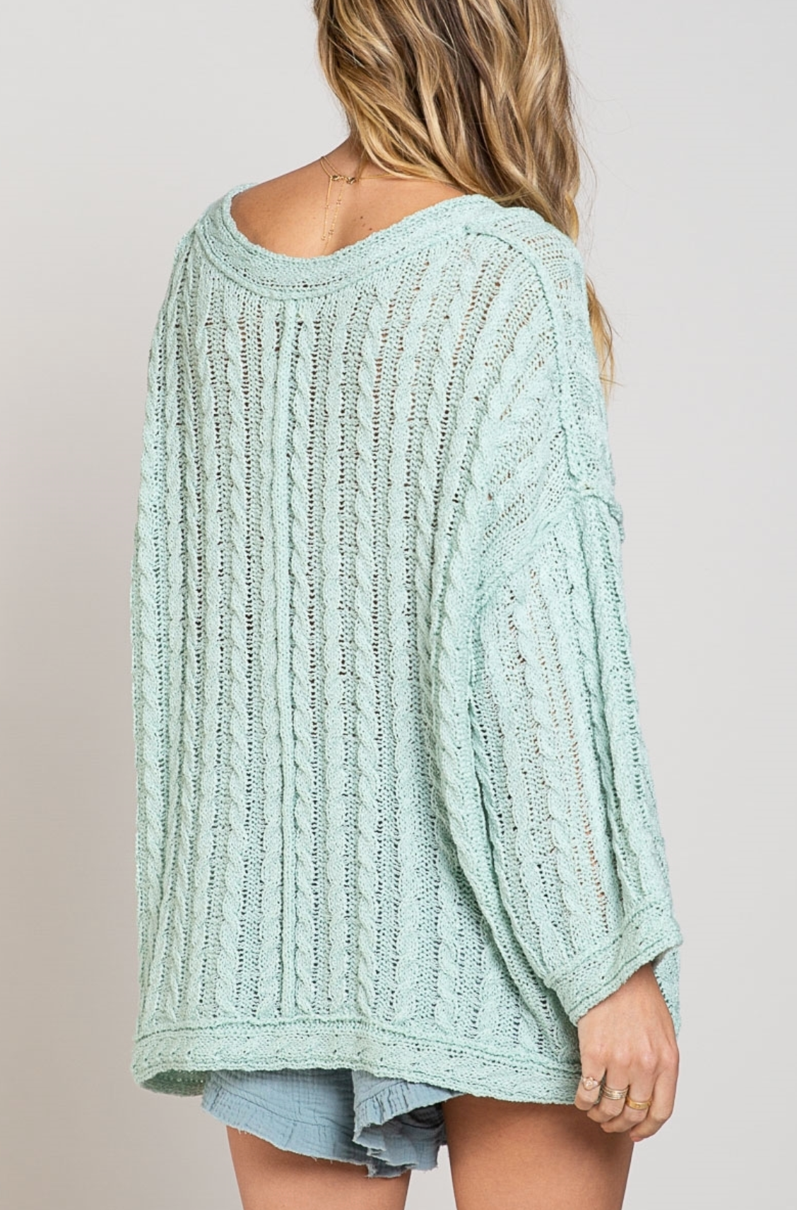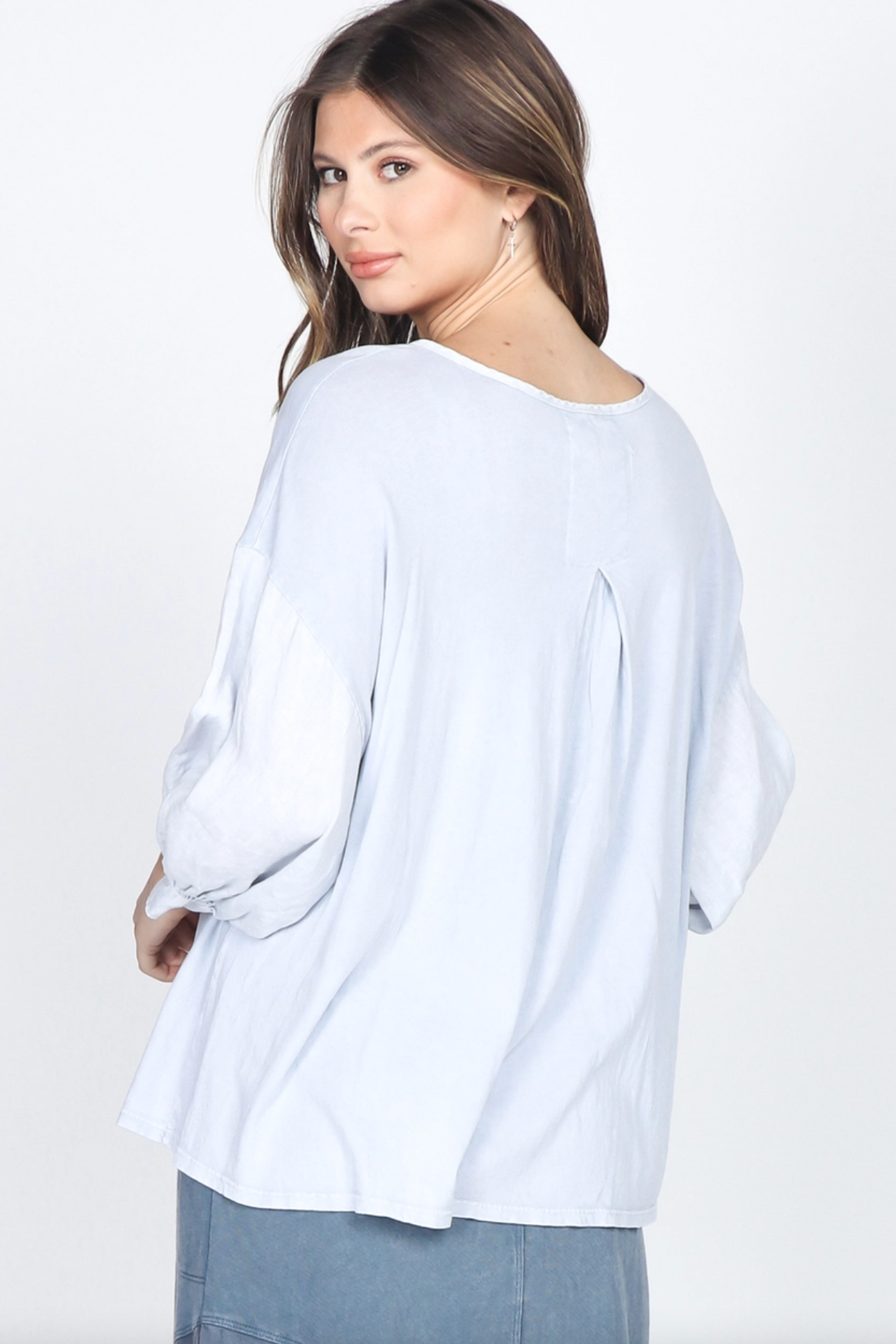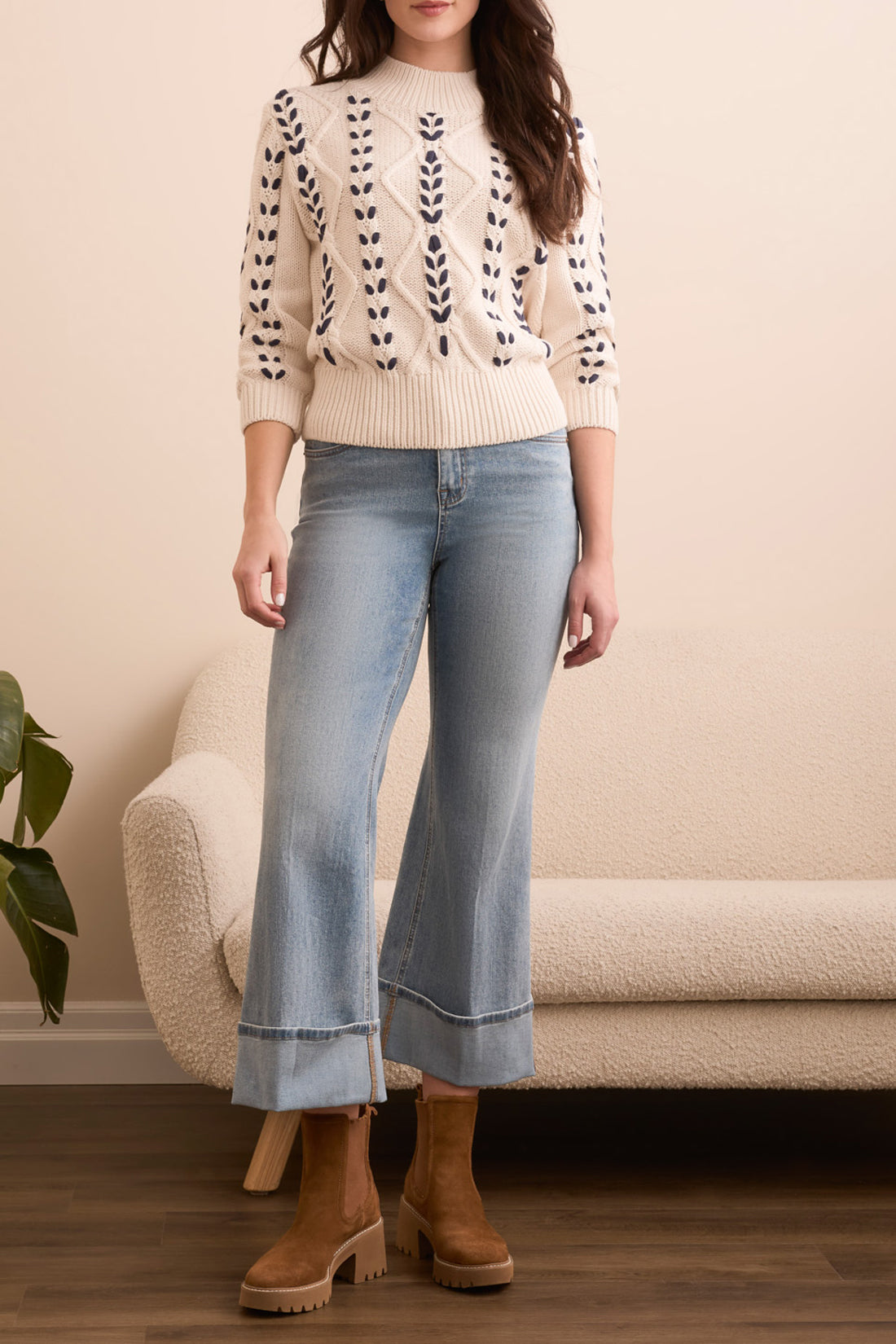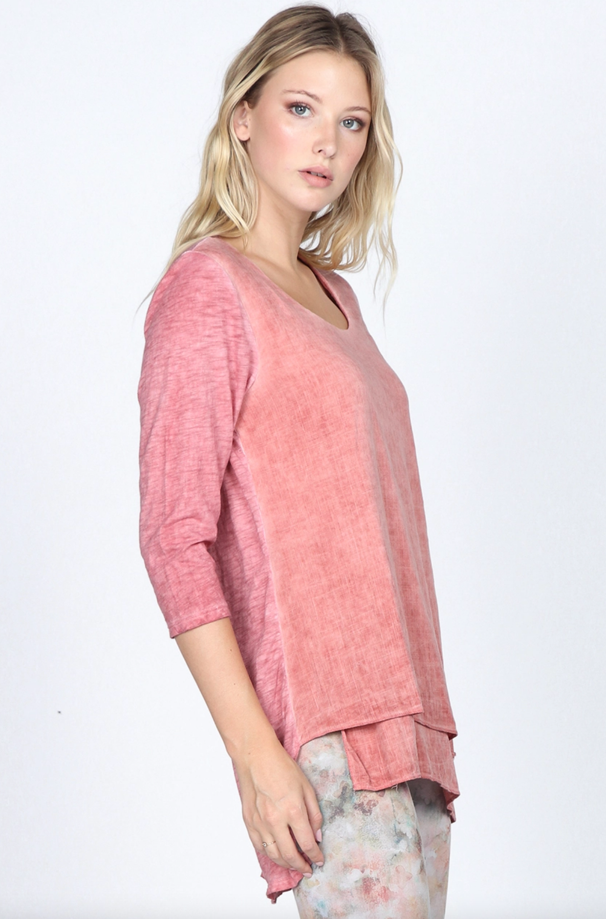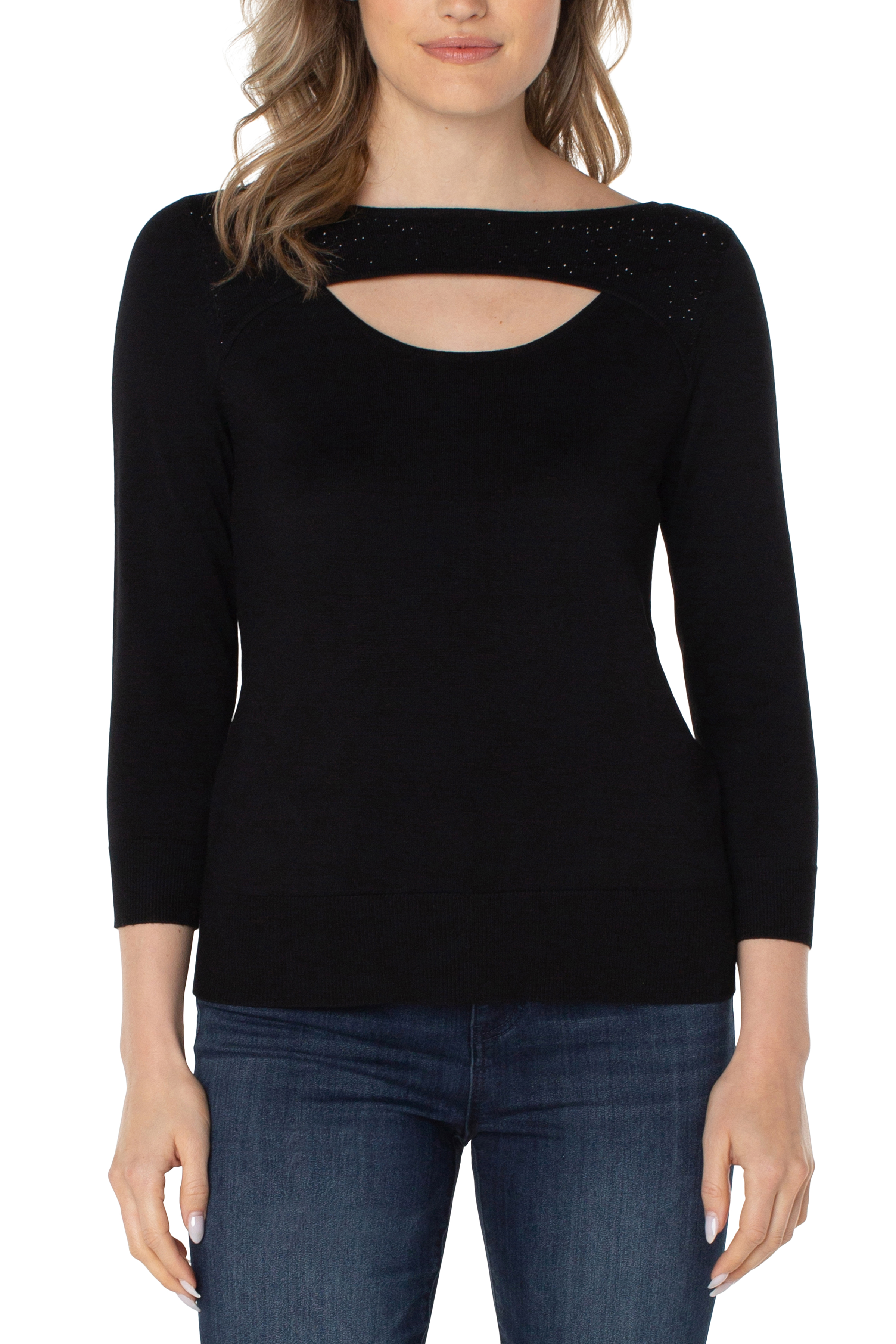 3/4 Sleeve V-Neck Sweater w/ Pique