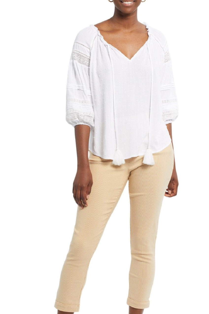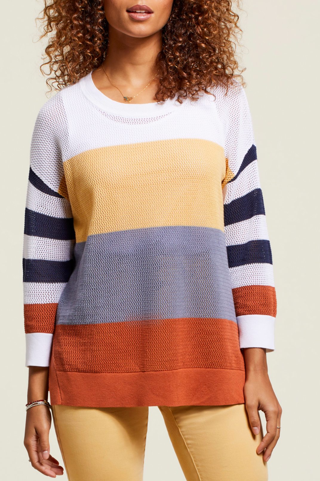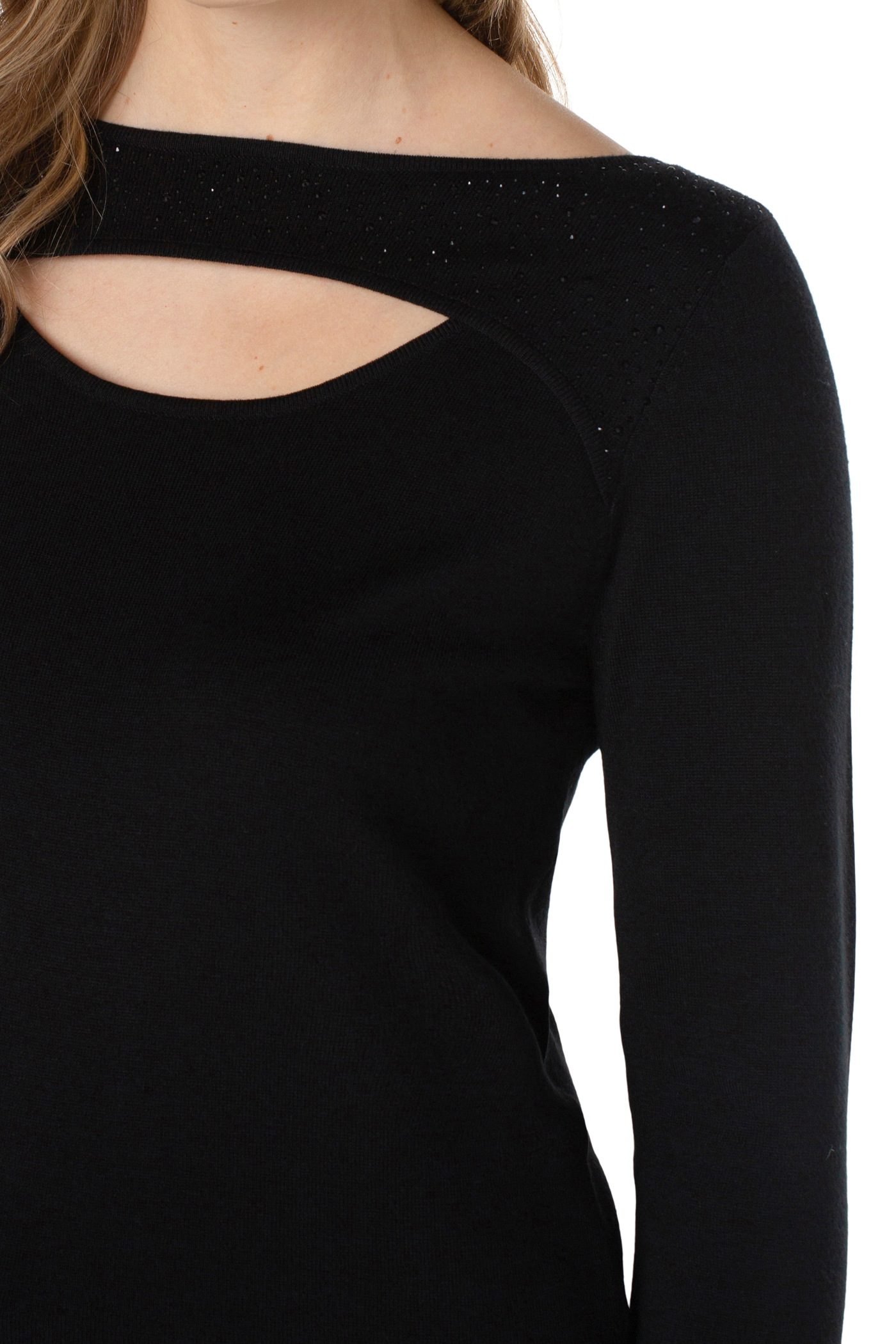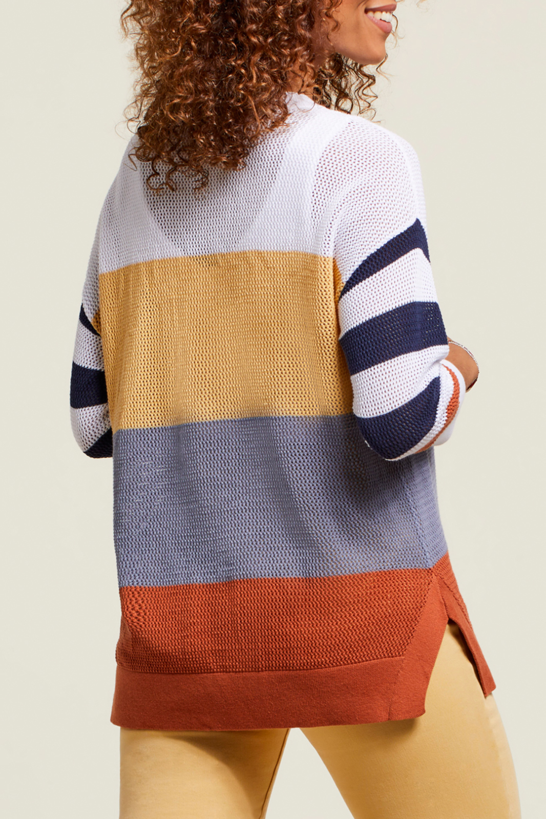3/4 Sleeve V-Neck Sweater w/ Pique