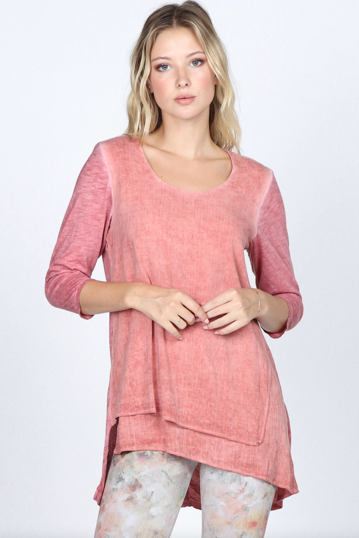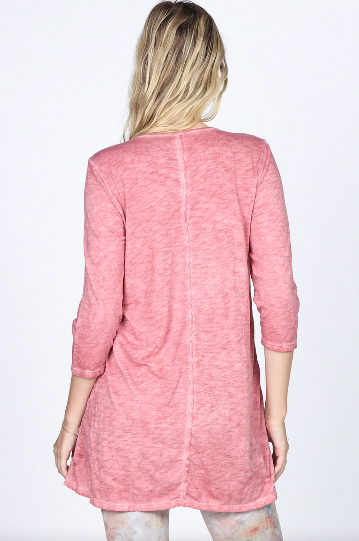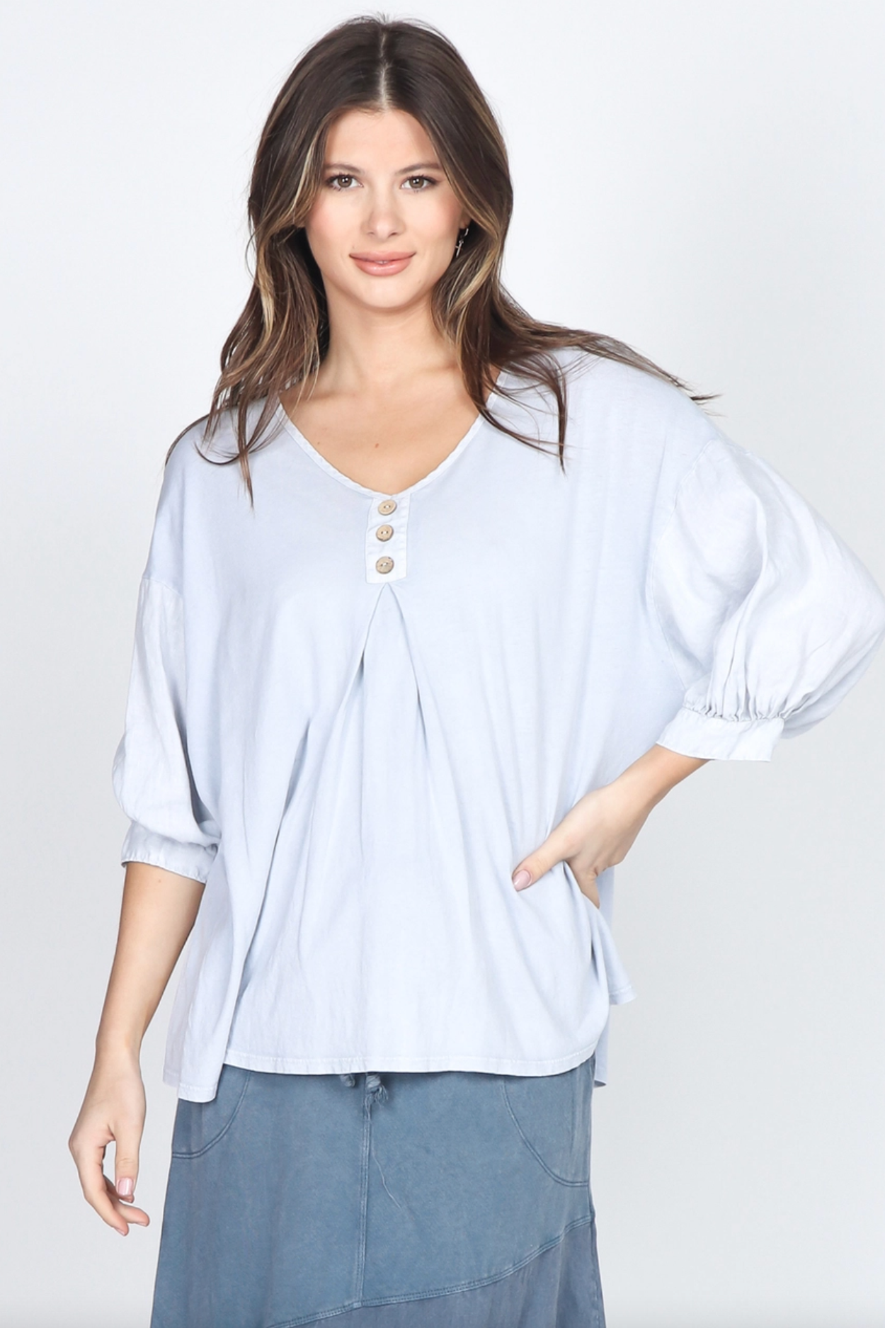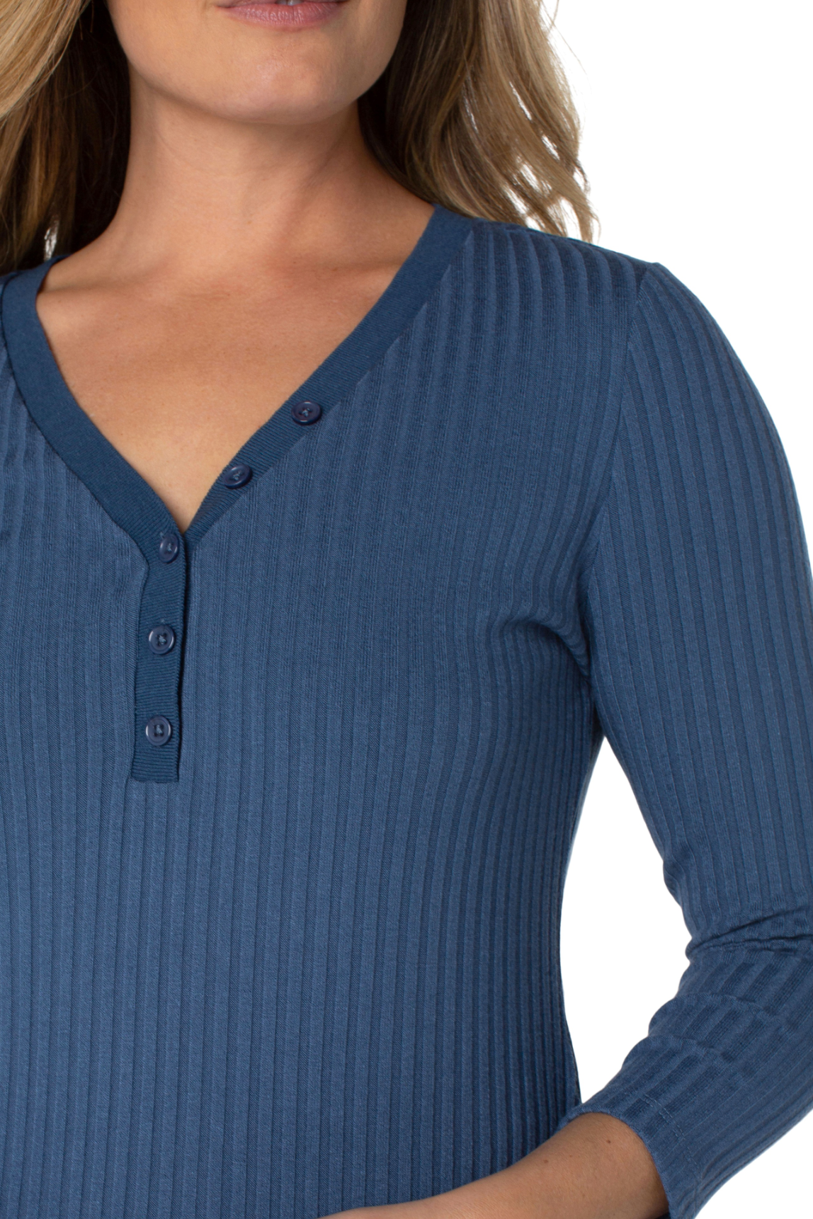 3/4 Sleeve Button Front Rib Knit Henley Top