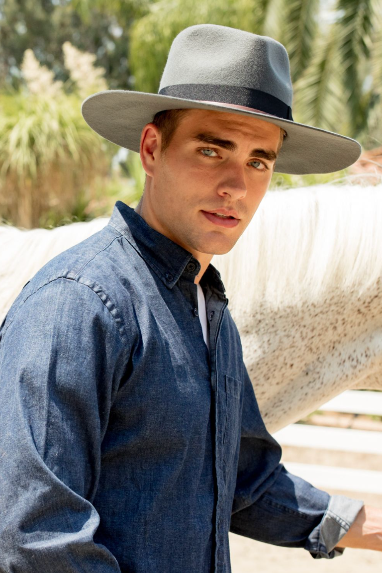 Features a custom band with a 3.75 inch brim. Made of 100% wool. This wool felt hat looks great with a chunky sweater, jeans, and boots. Great, versatile hat for an everyday casual fall outfit.