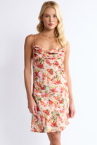 The Aniston Ruched Cowl Neck Mini Dress is the perfect feminine outfit for your next date night. The floral print of this dress adds a romantic feel to your style, as well as a flattering draped cowl neck.