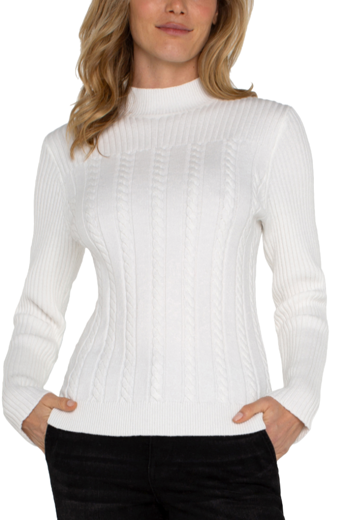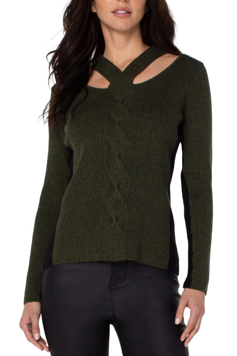 Long Sleeve Cable Twist Neck Wrap Sweater