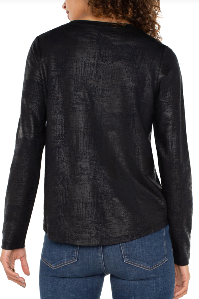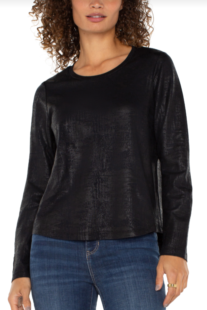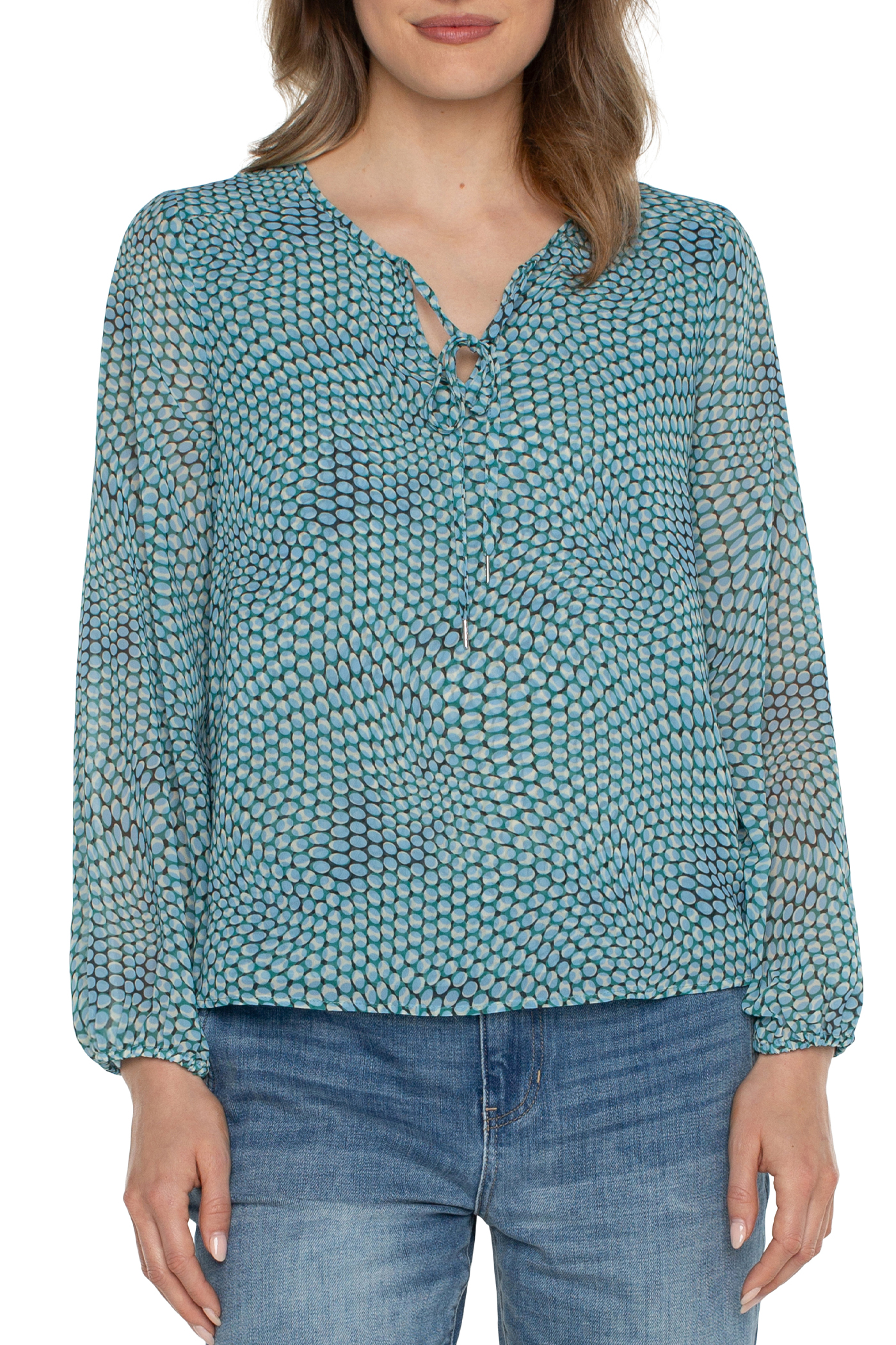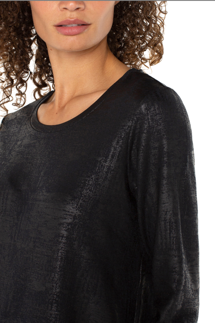 Long Sleeve Printed Mesh Crew Neck Knit Toop