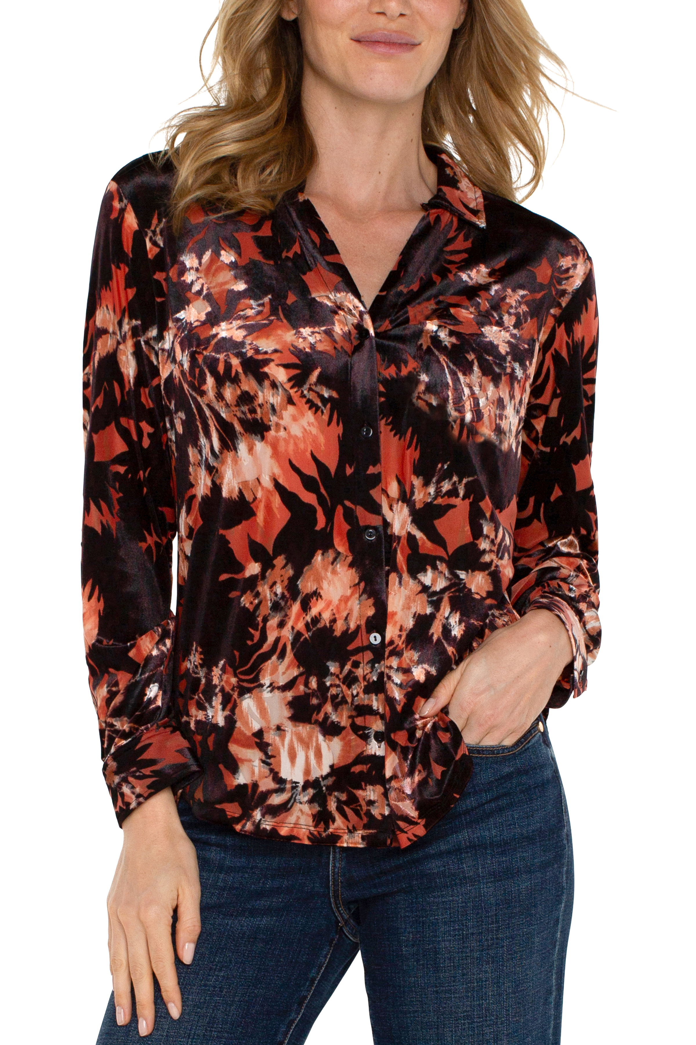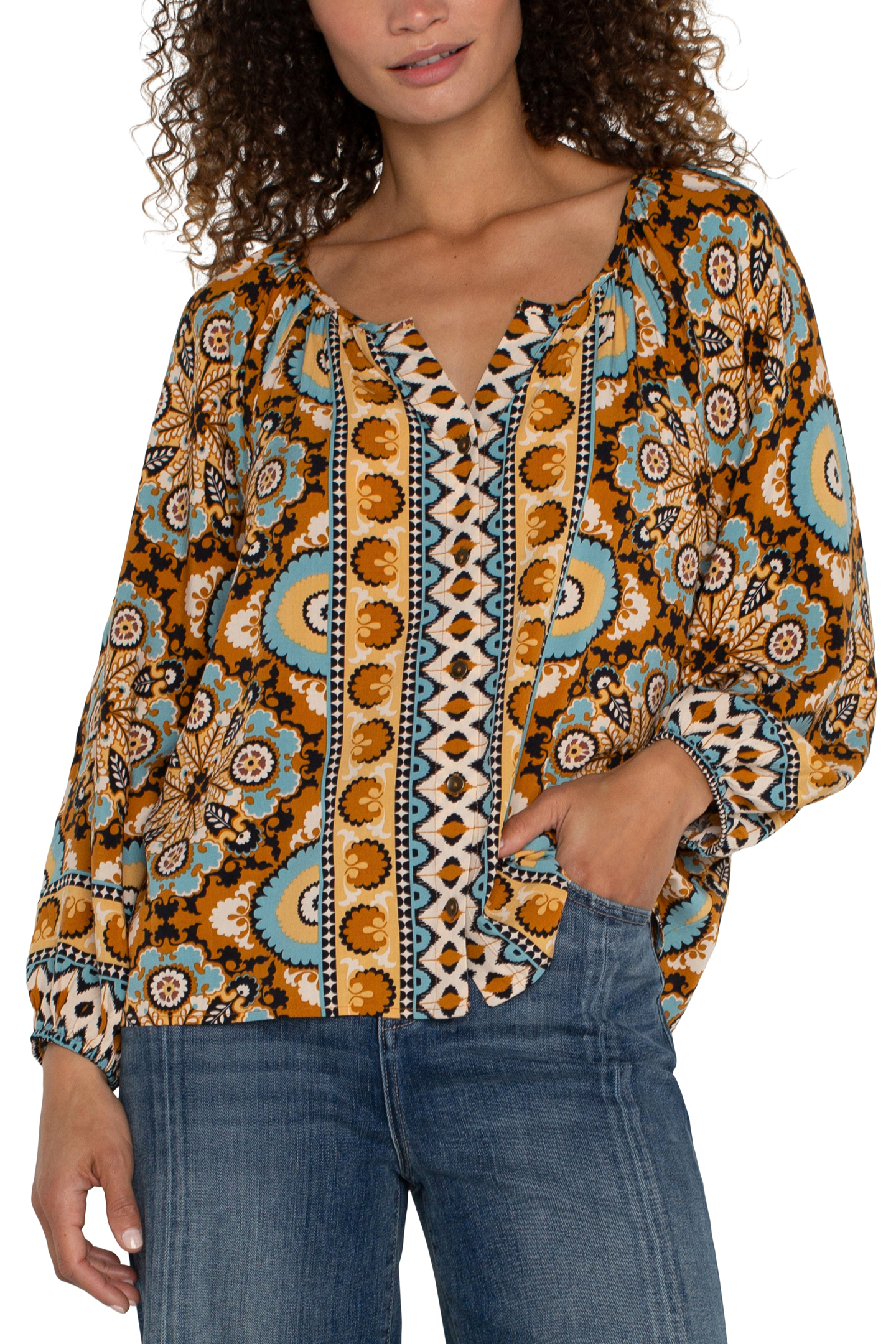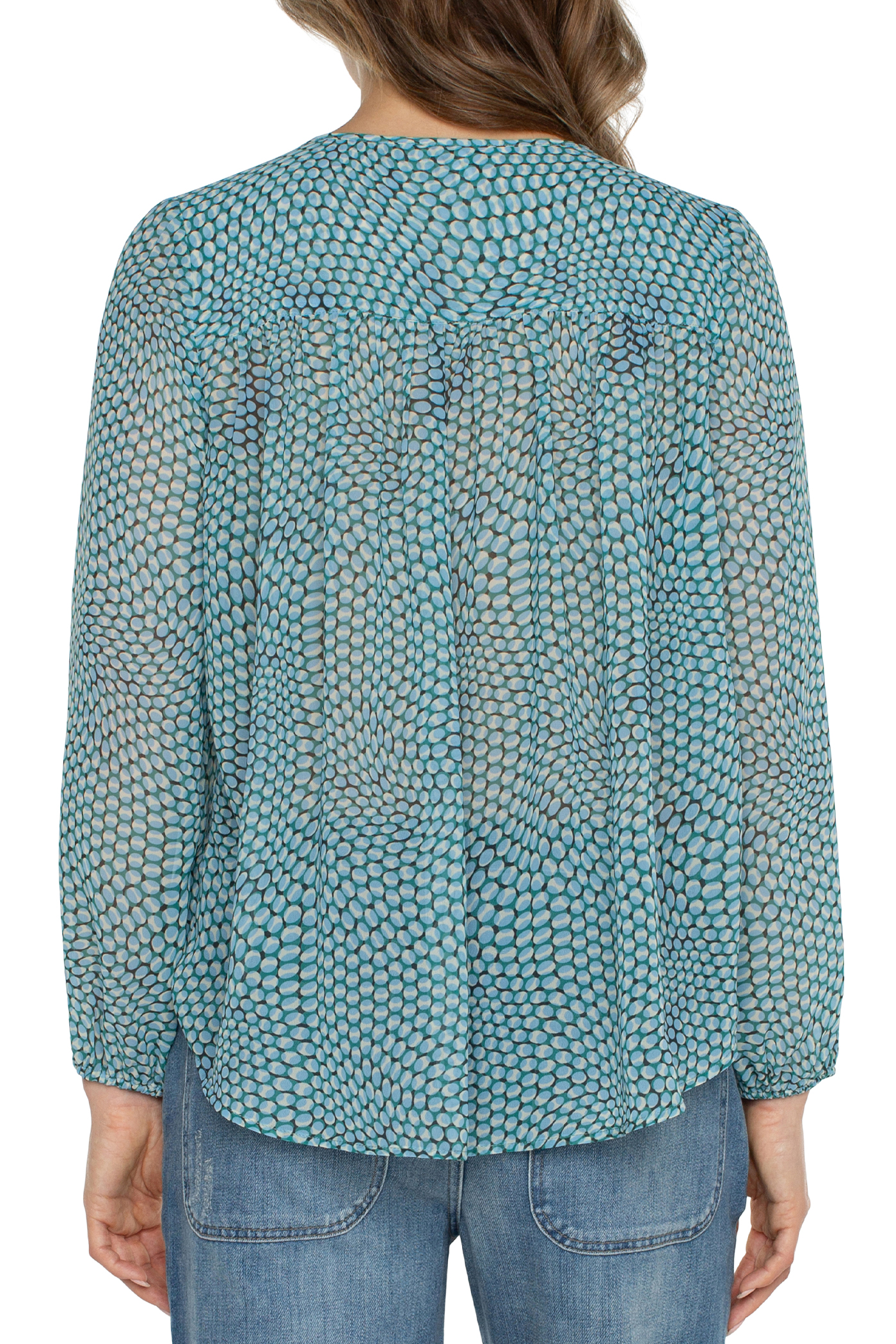 Long Sleeve Printed Mesh Crew Neck Knit Toop