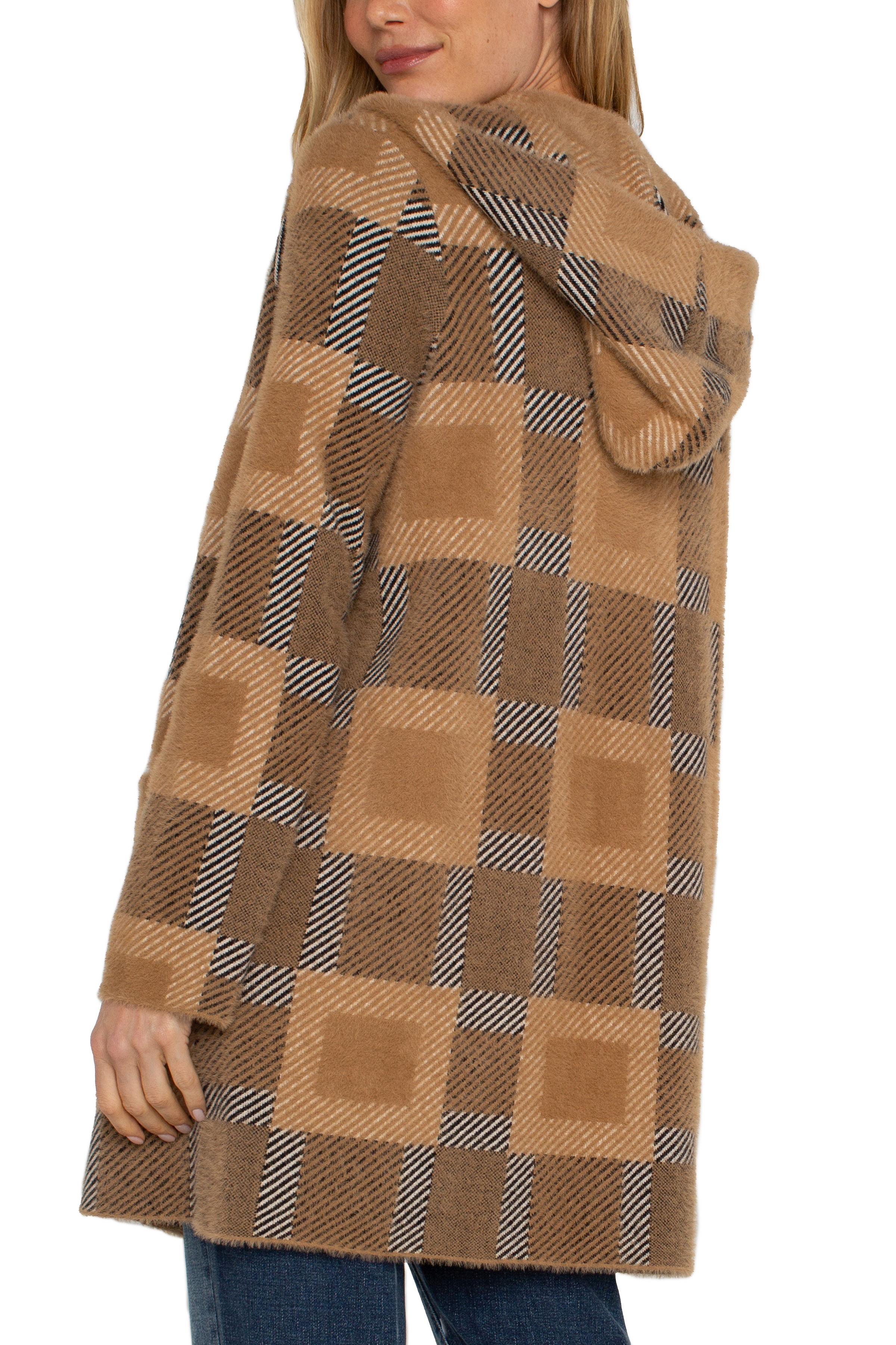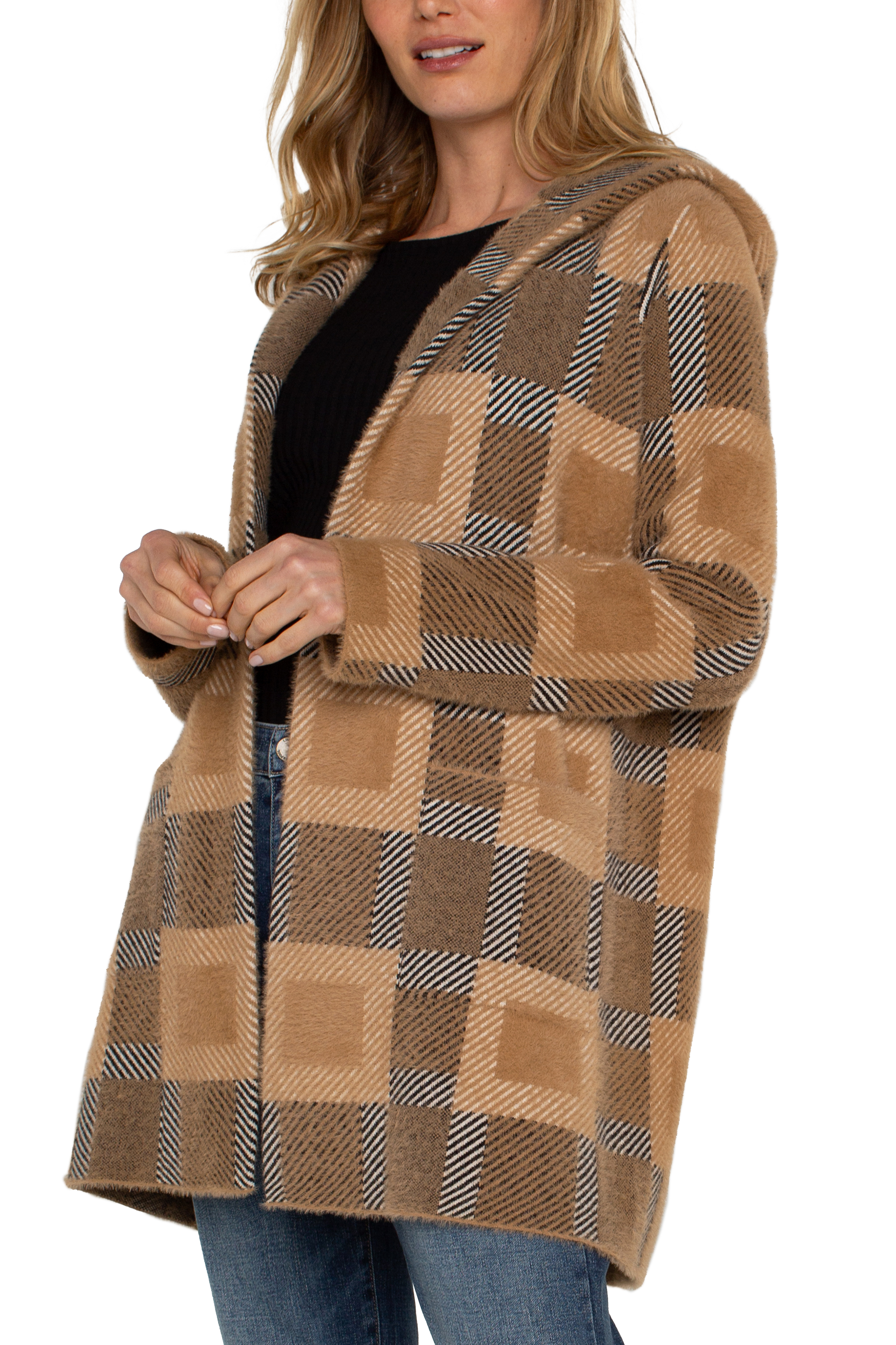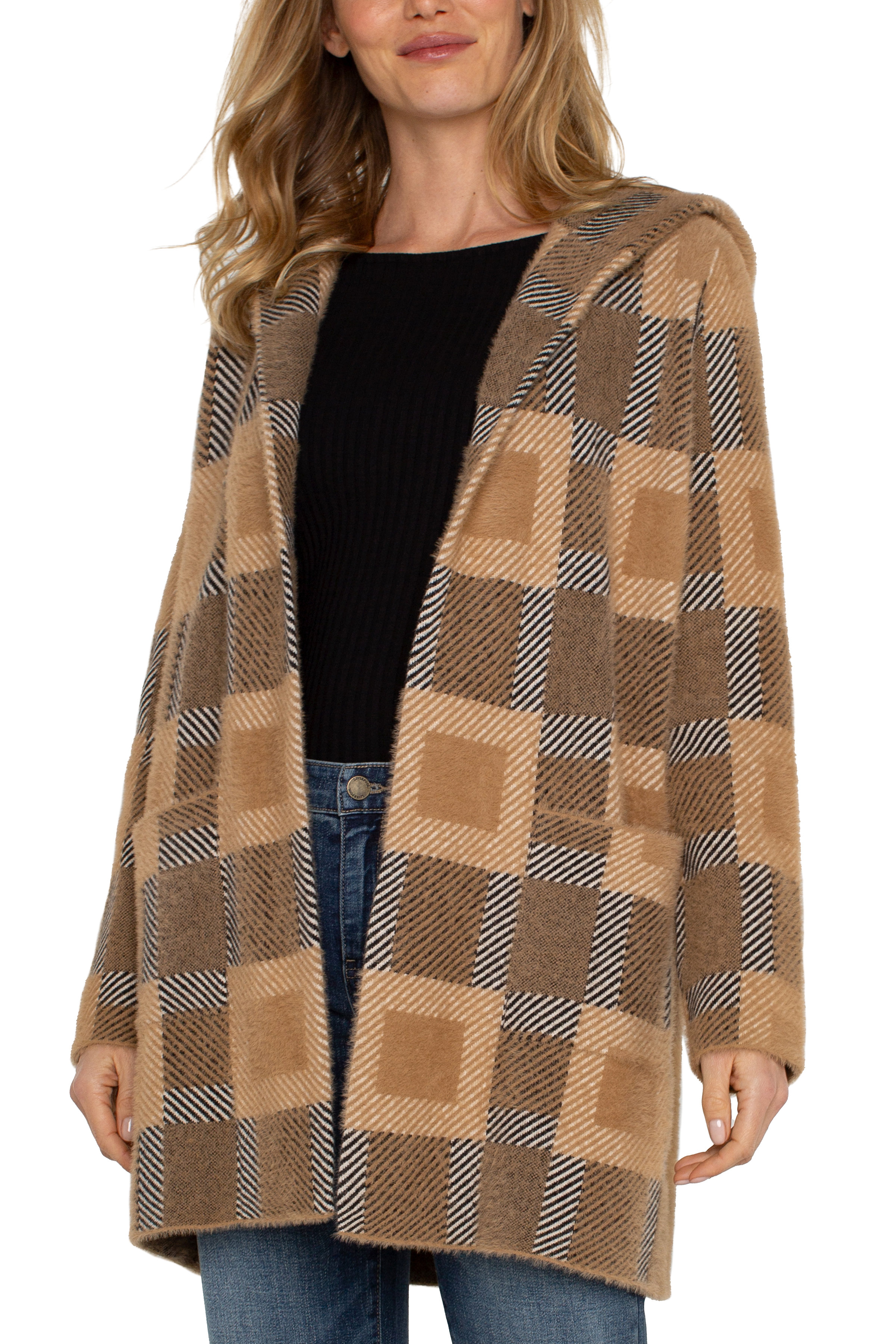 Long Sleeve Open Front Sweater Coat wWith Hood