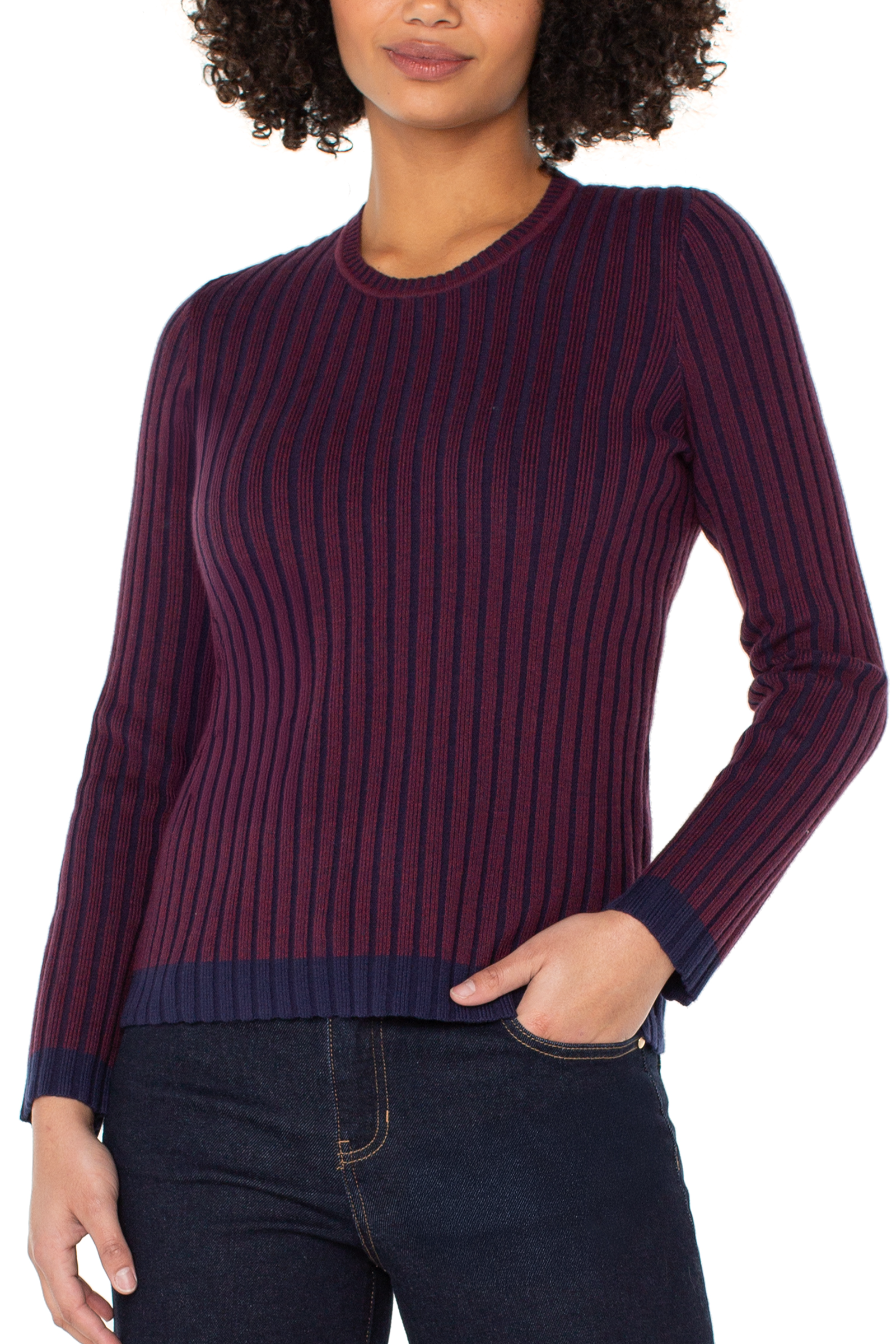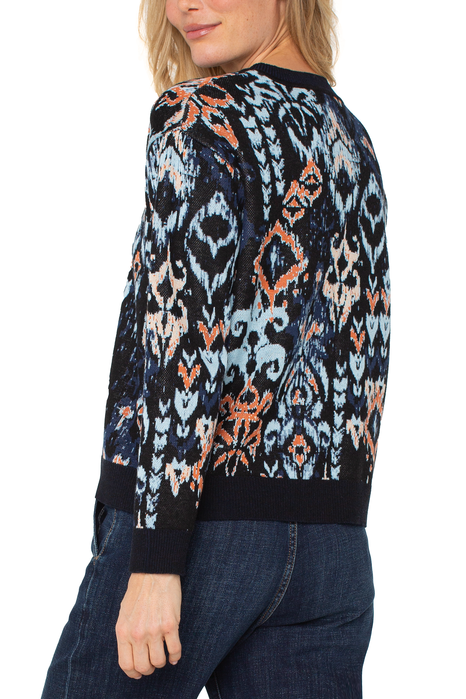 Long Sleeve Crew Neck Dropped Shoulder Jacquard Sweater