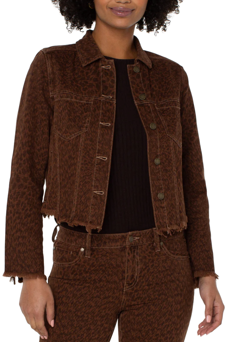 Printed Crop Jacket With Fray and Hem