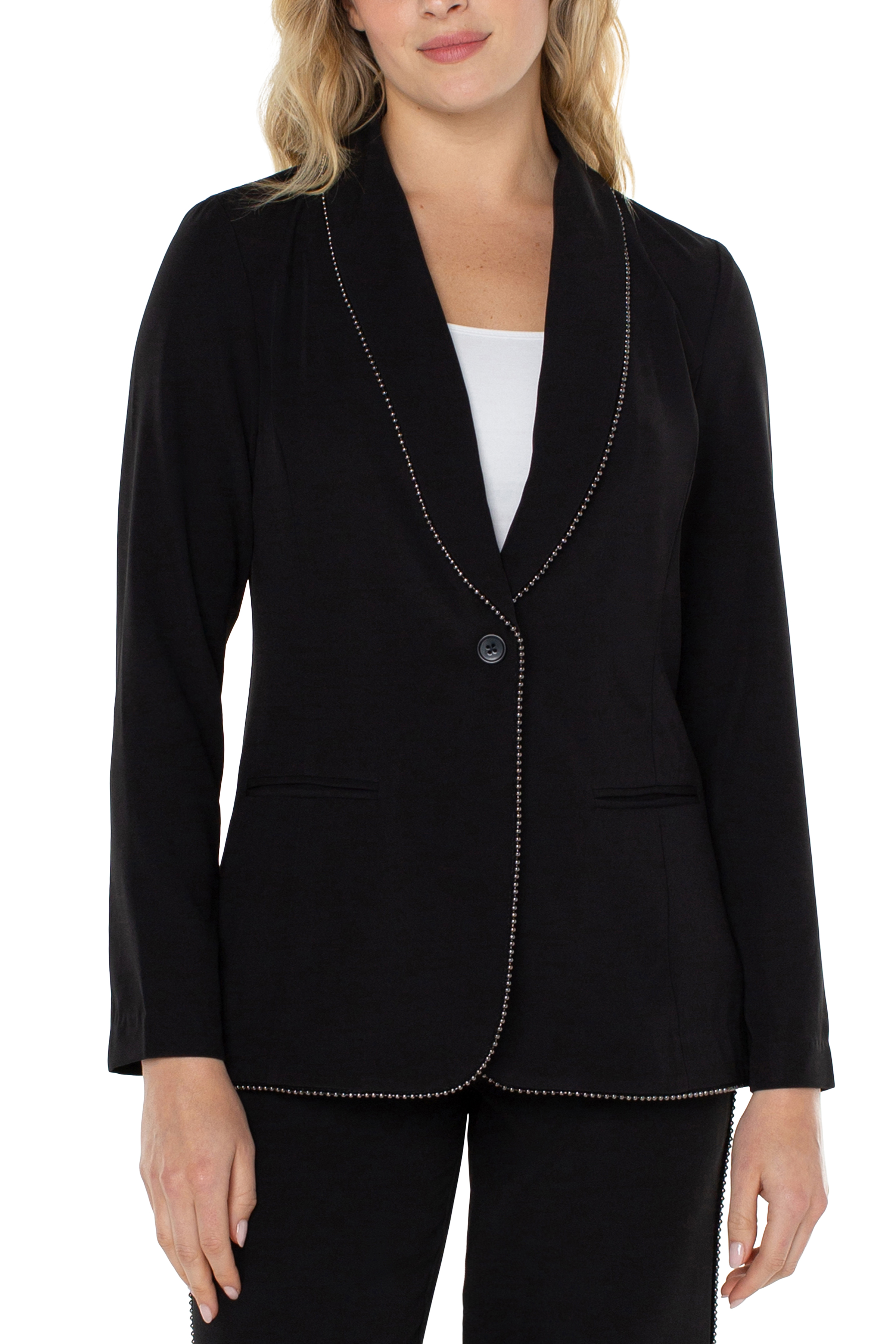 Shawl Collar Blazer w/ Chain Trim