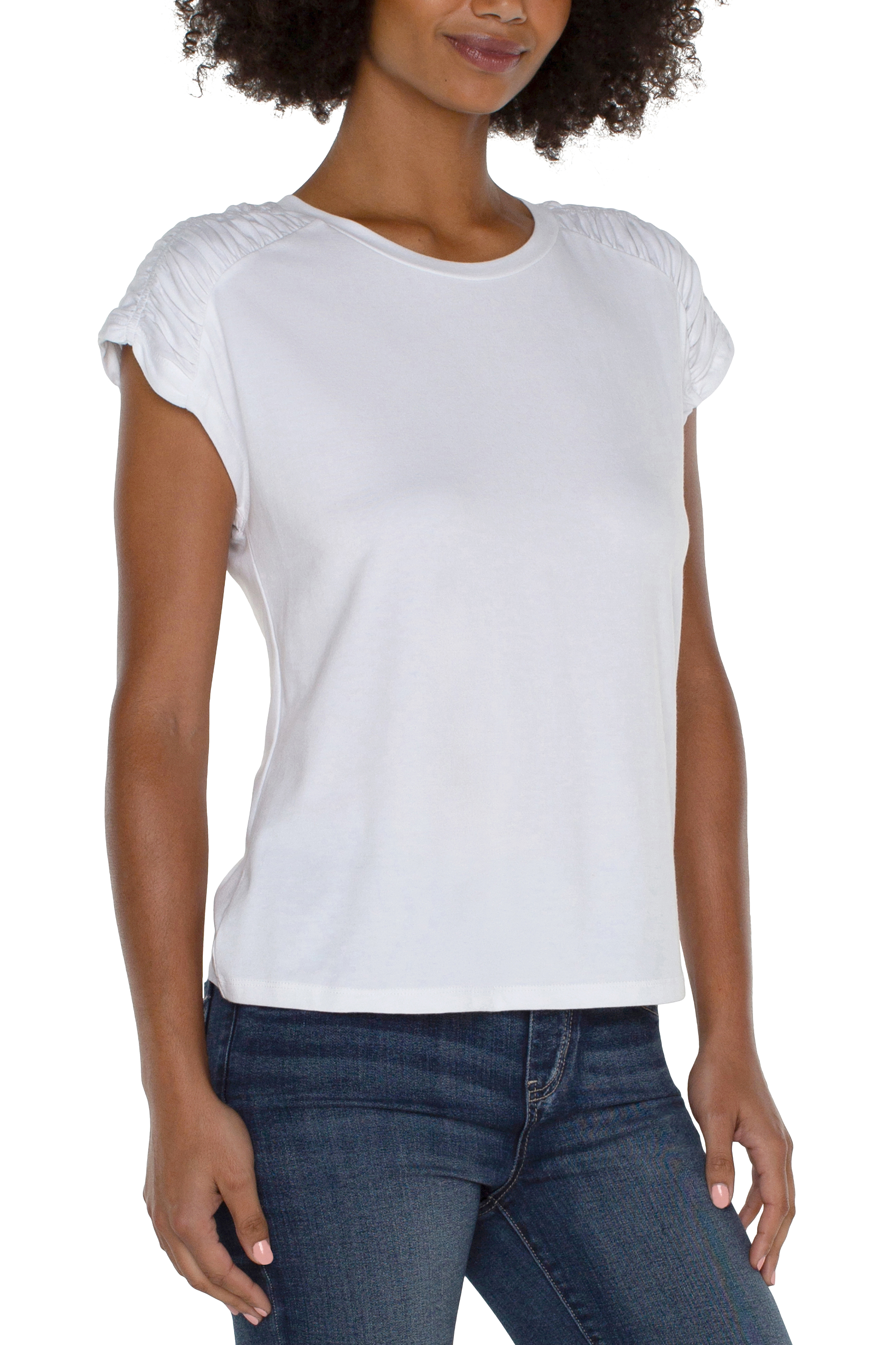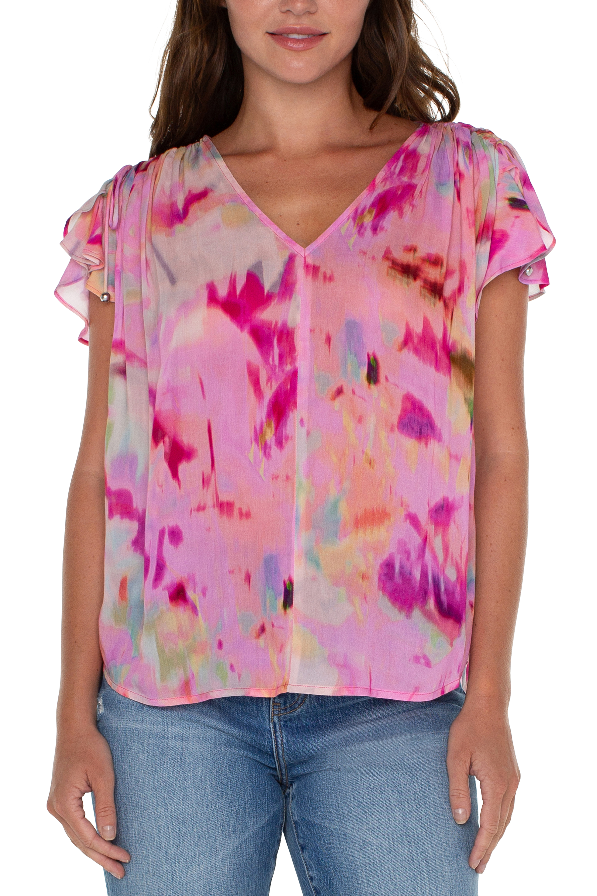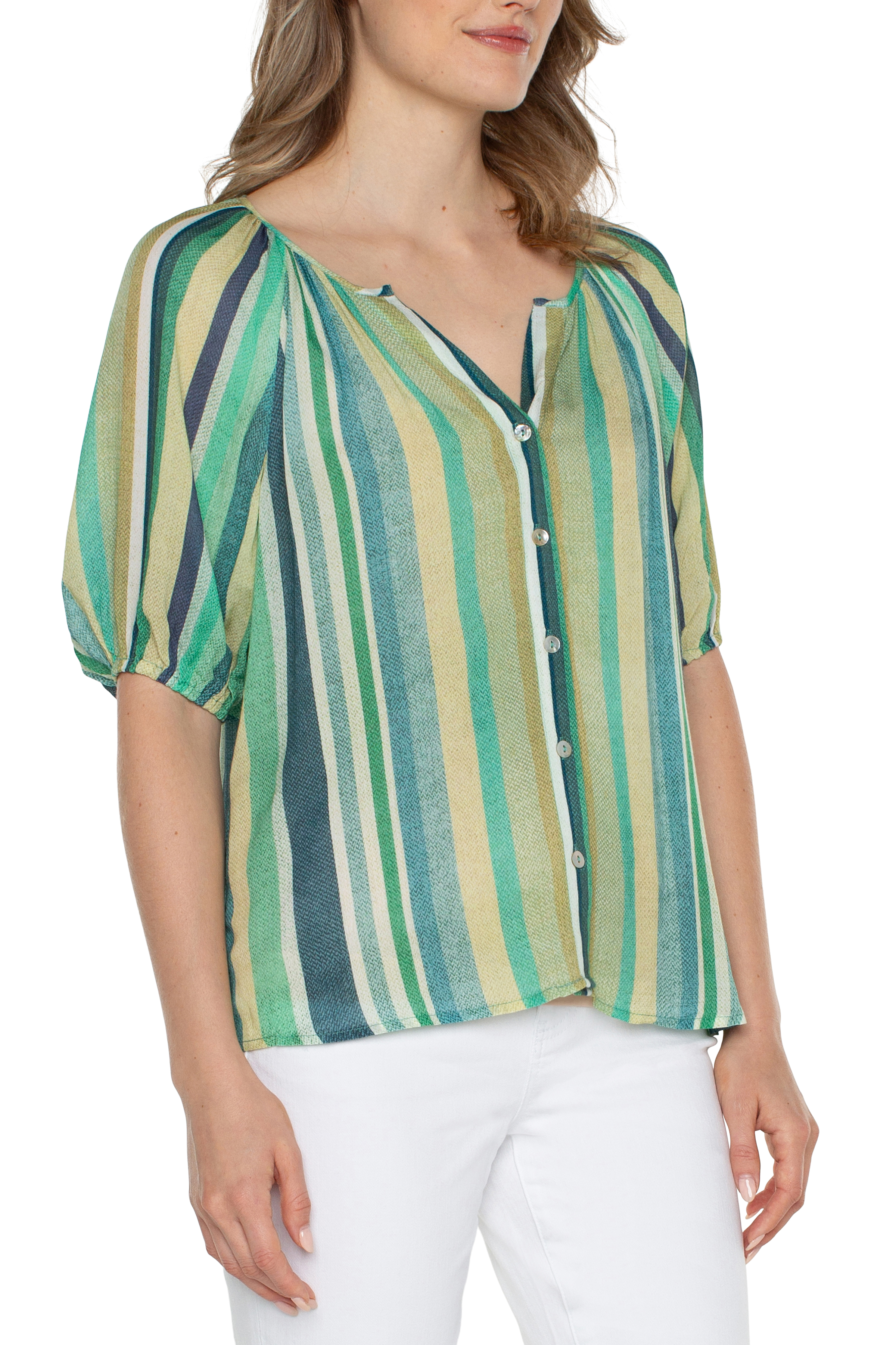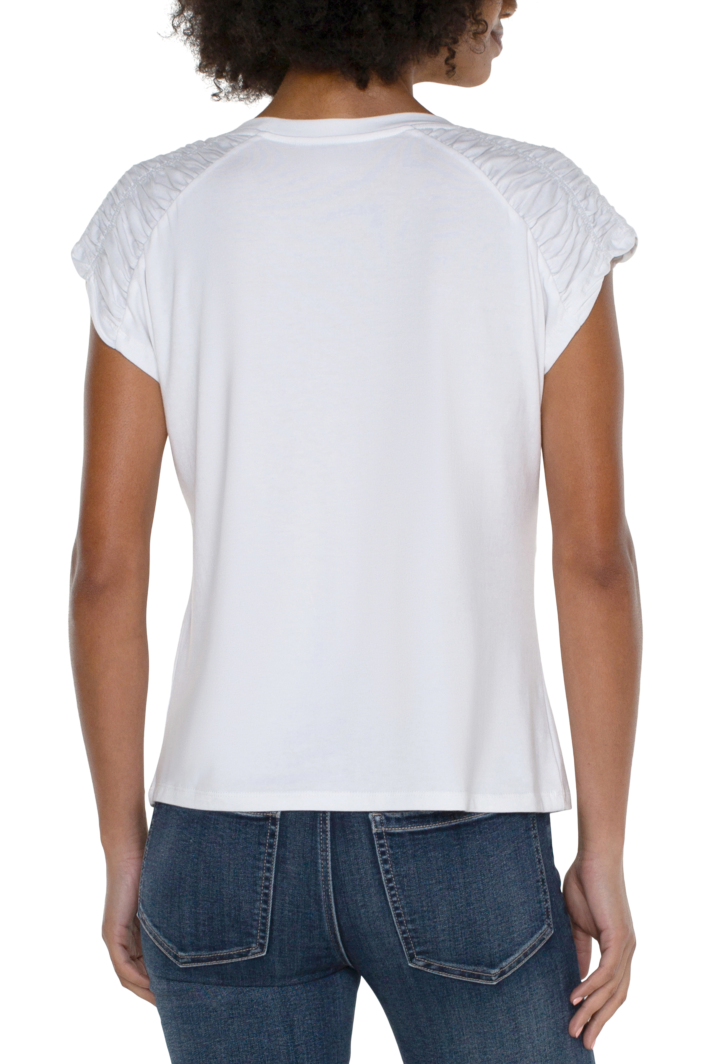 Shirred V Neck Dolman Top