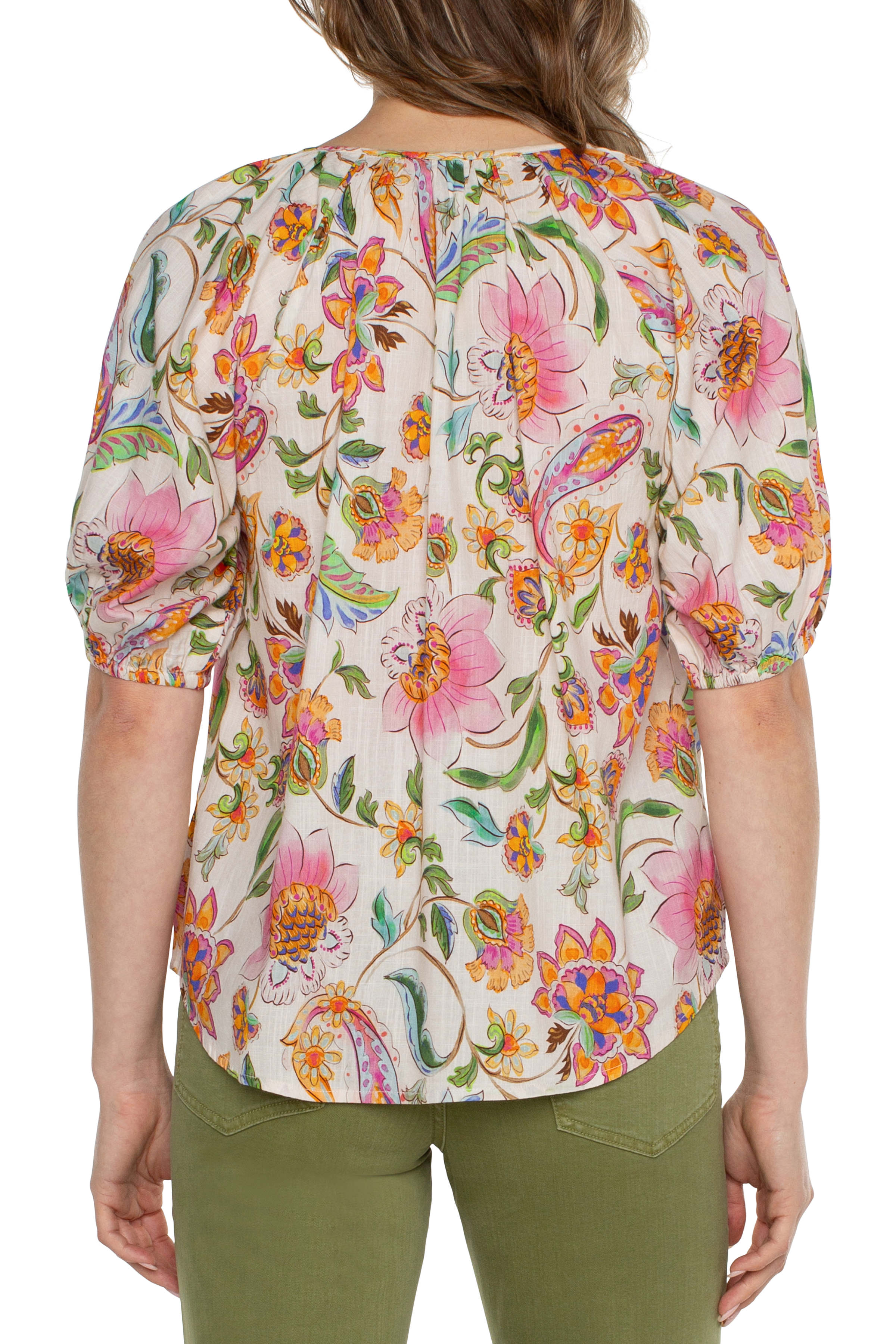 Puff Sleeve Top with Smocked Waistband