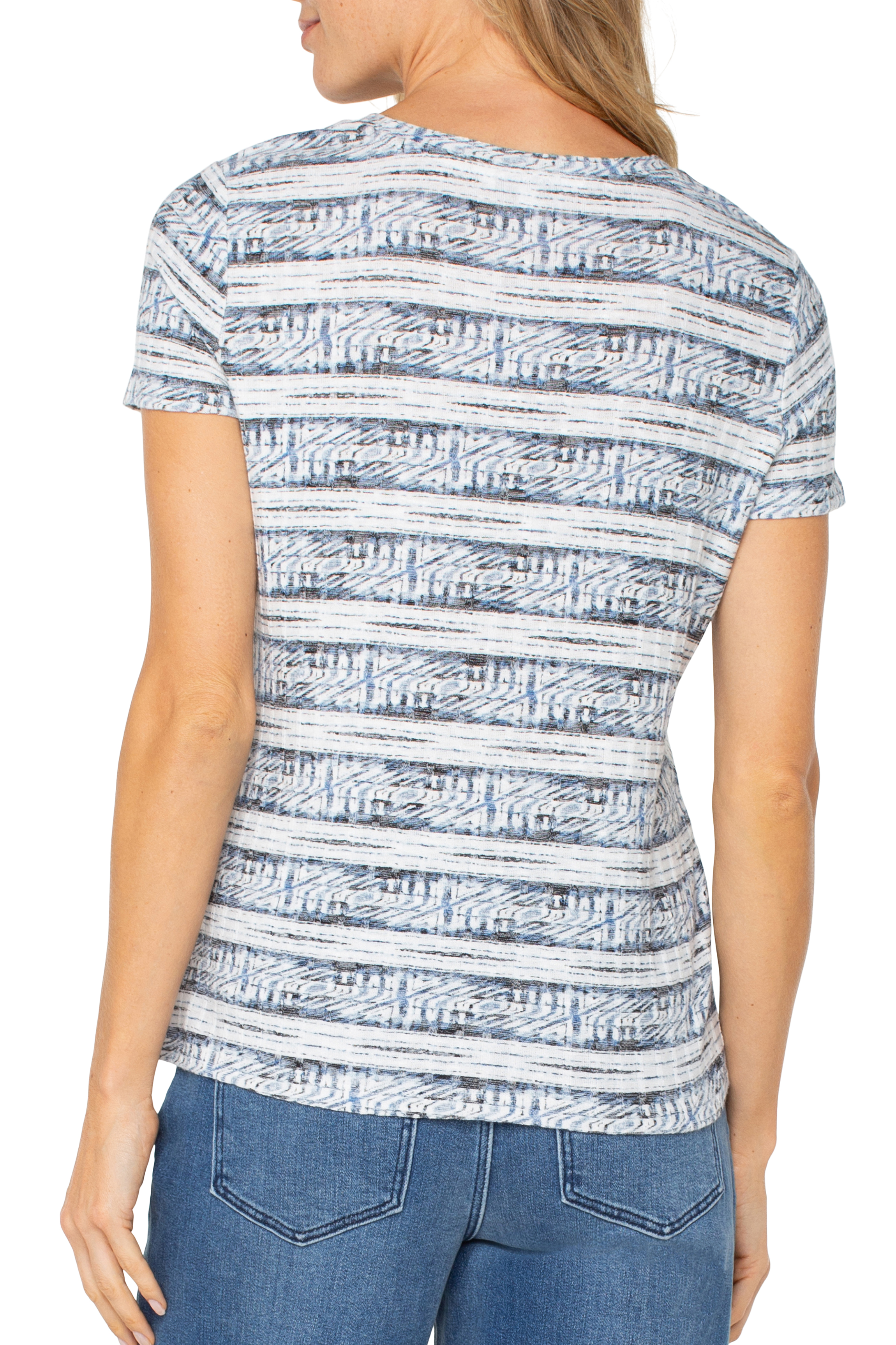 Short Sleeve Scoop Neck Knit Top With Miter Front