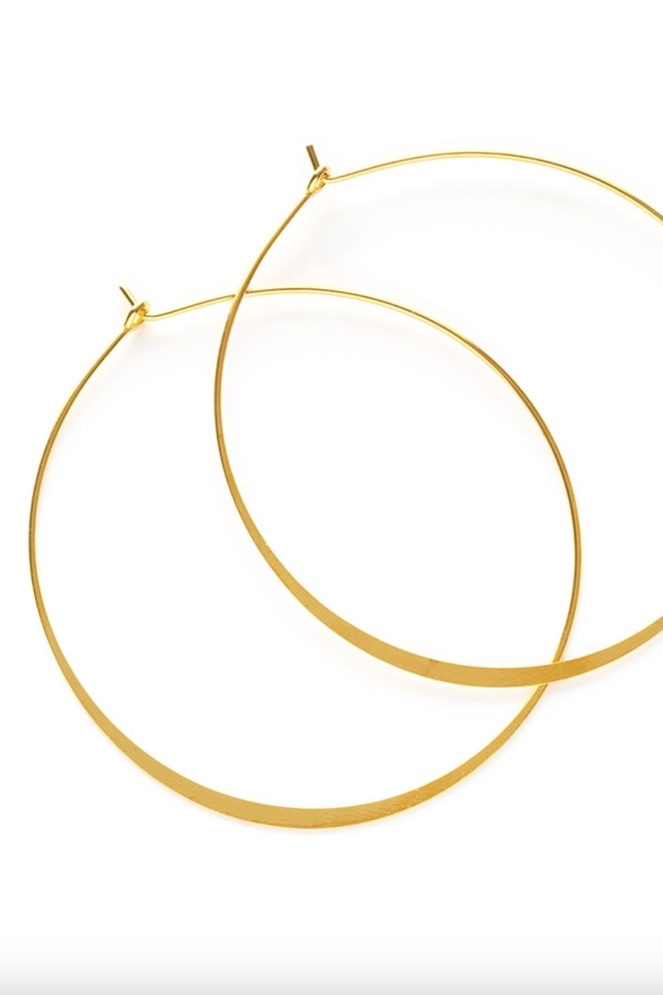 Easy, everyday classics: 2" diameter hoop earrings. Plated in 24k gold and coated to resist tarnish and give a hypoallergenic surface that is good for even sensitive ears!