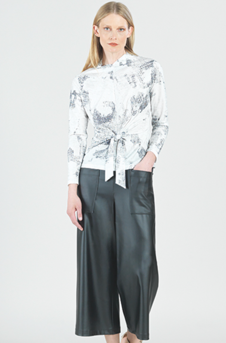 You'll never want to lose our Abstract Marble Foil Knit Center Front Tie Top! This flattering top features a v-bottle neckline, a neck to hem seam, long sleeves, and a front center waist tie that creates a beautiful draped effect which accentuates your natural figure.
