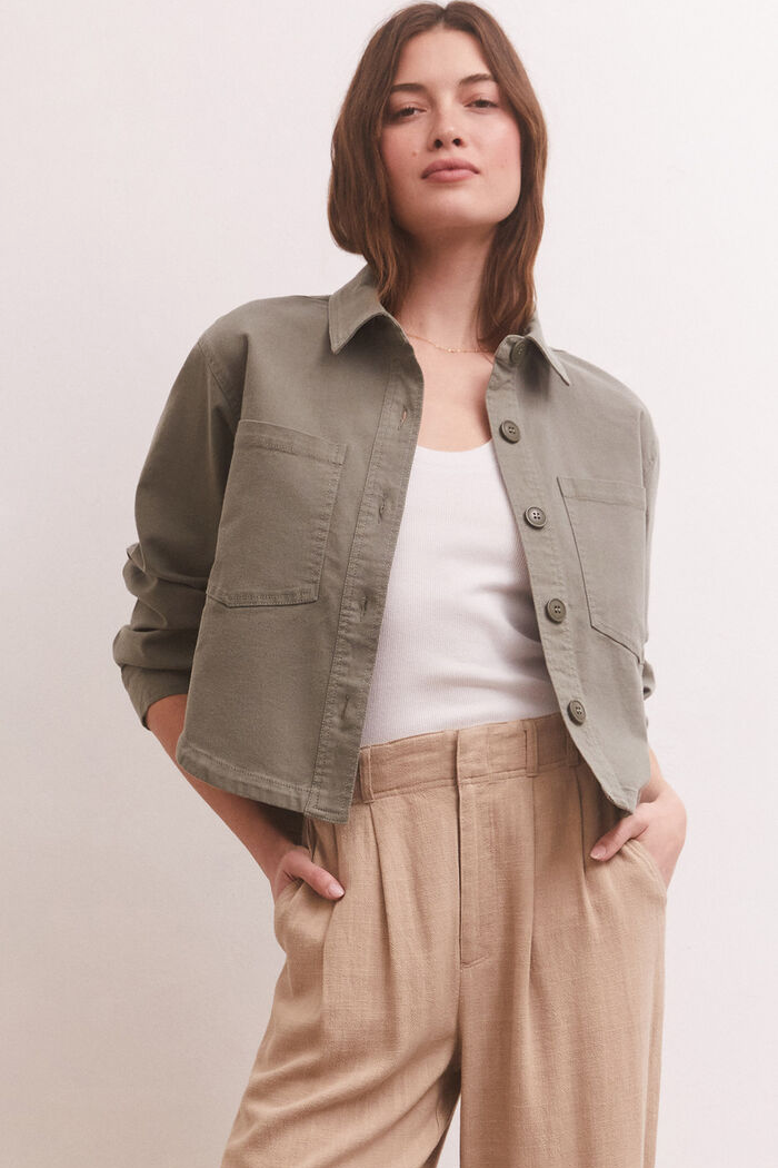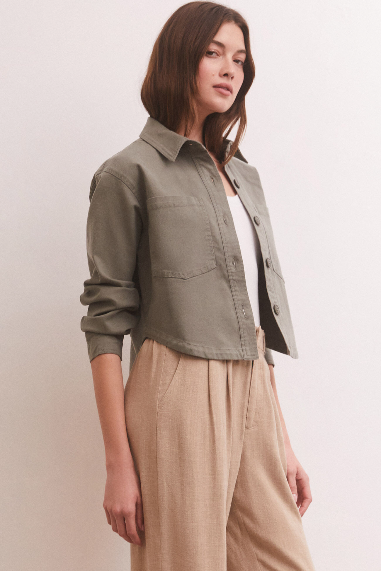 Soft and ultra comfortable, the All Day Cropped Twill Jacket is sure to become an everyday part of her wardrobe. Made using elevated Cotton Twill fabric, this oversized jacket features a button-up, collared design, pockets, and dyed to match buttons.