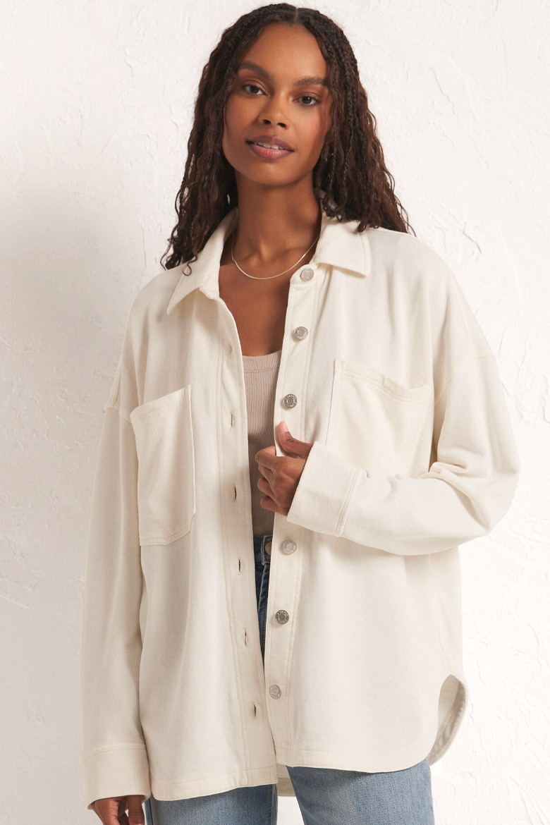 You've been loving our denim version, but let us introduce you to your new favorite knit jacket, which is part of our best selling All Day collection. Equally soft and comfy, this oversized button front shirt jacket can be worn open or buttoned for a versatile layer you'll want to live in.