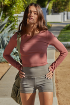 Knit Seamless Nylon Spandex Ribbed Round Neck Long Sleeve With Thumb Hole Detailed Crop Top