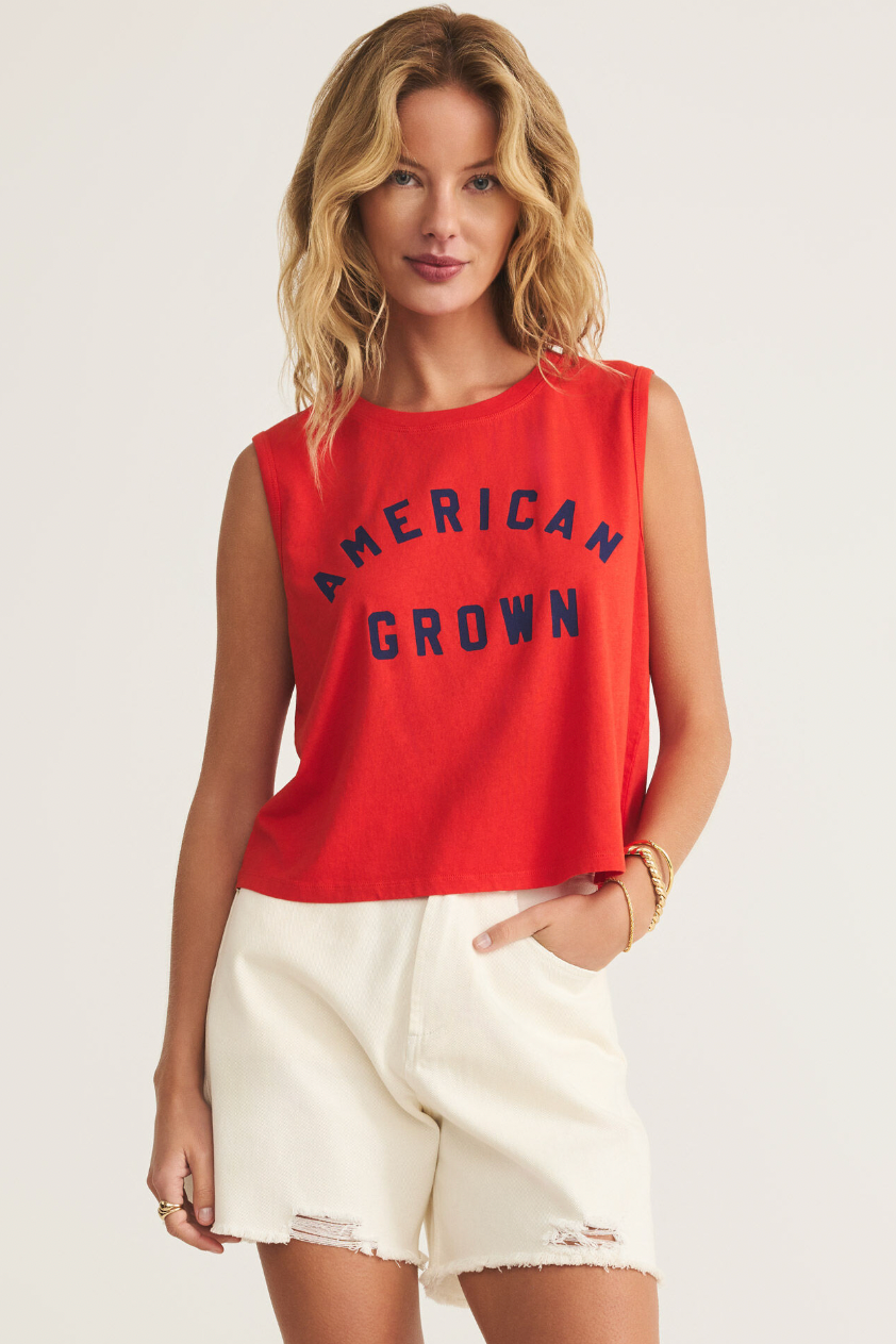 Celebrate Independence Day this summer in the American Grown Graphic Tank! This relaxed tank features a crew neck and a lightweight material making it ideal for warm weather. Pair with shorts to complete the outfit!