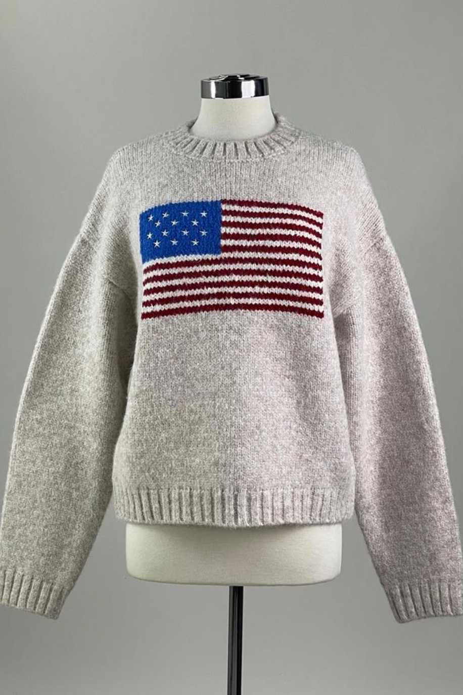 Cozy up in the Americana Flag Pullover. Flag sweaters are currently a favorite, and this crew neck relaxed fit sweater will be perfect for being comfortable and up to trends.