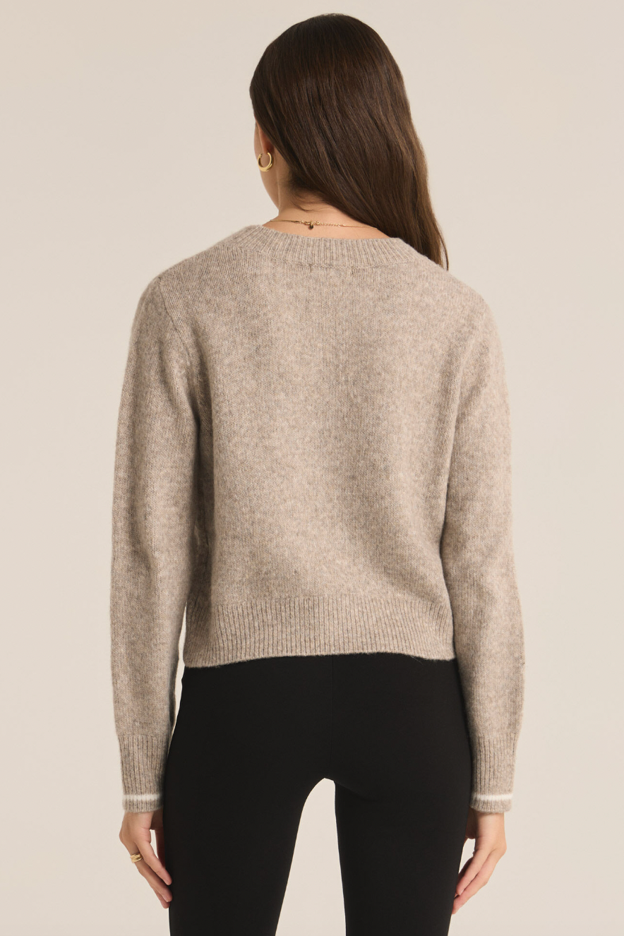 This cozy crew neck sweater, made from our lightweight and ultra-soft Feather Yarns, is a must-have for your wardrobe. With a relaxed fit, embroidered "Milan" lettering, and a contrast stripe on the sleeve cuff, it's perfect for everyday style and comfort.