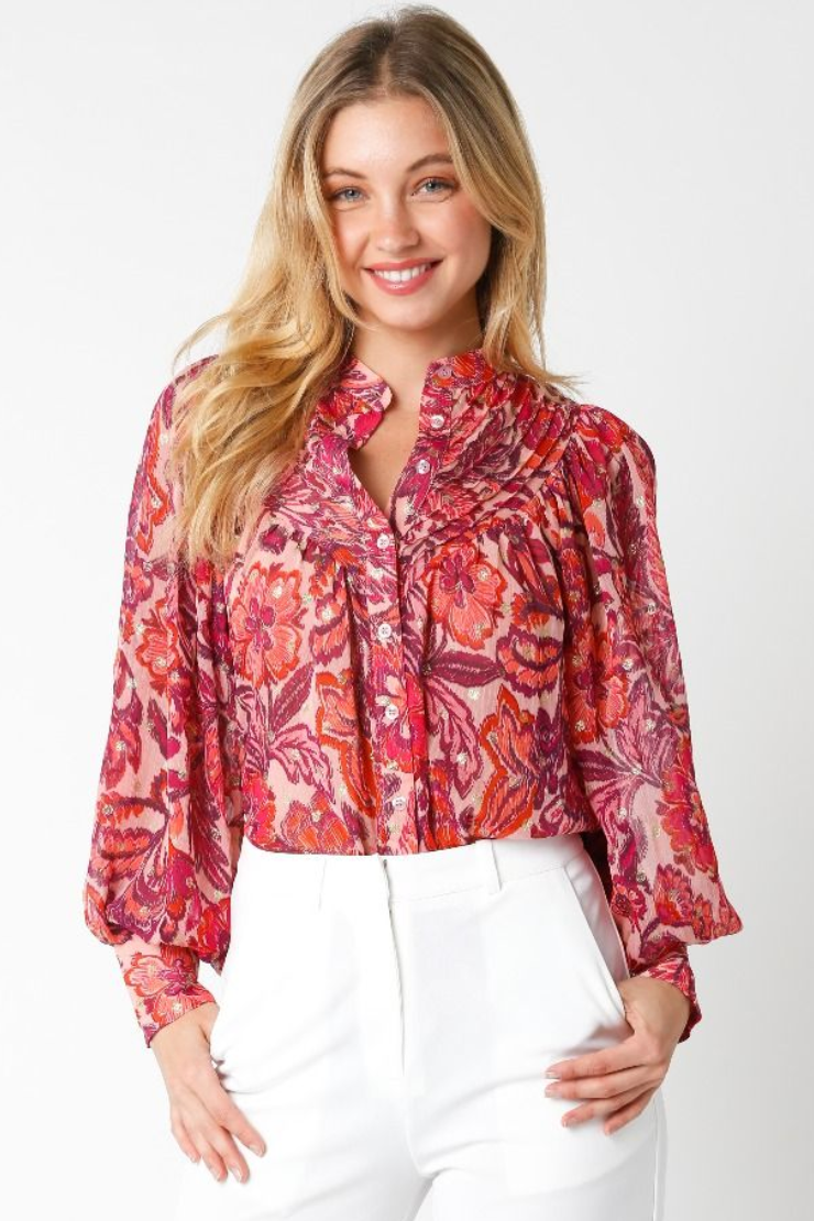 The Amy Top is perfect to wear for a pop of color! The design on this top has a playful element to it while still being stylish. This top features puff sleeves and a front button down closure.