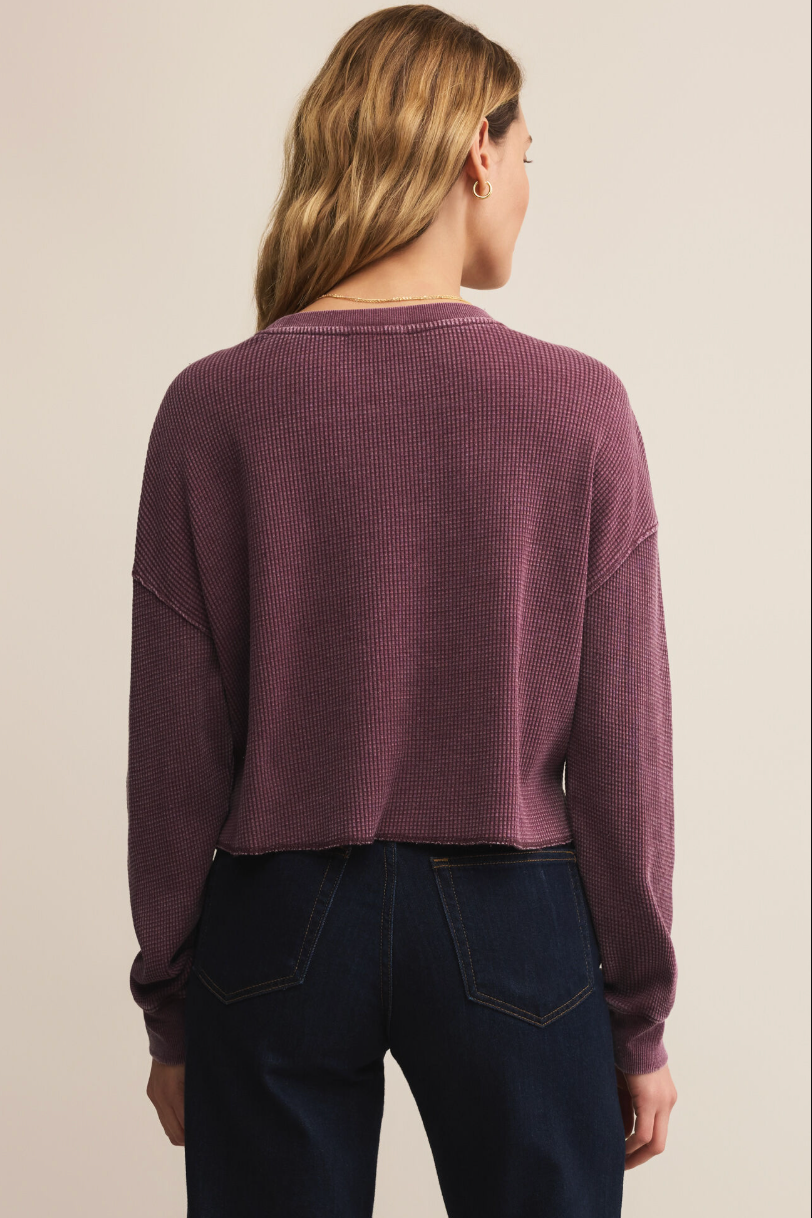 Easy, breathable, and just the right amount of relaxed. This mineral-washed, cropped thermal features soft waffle knit and subtle seaming details that elevate your everyday rotation.