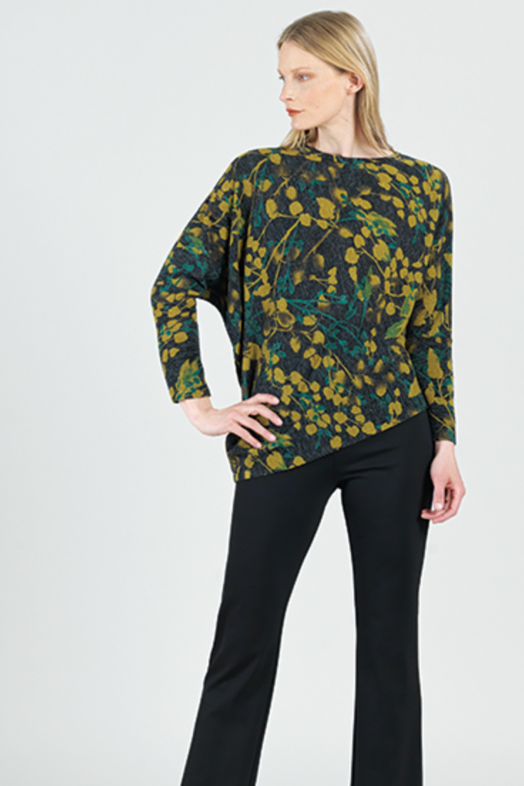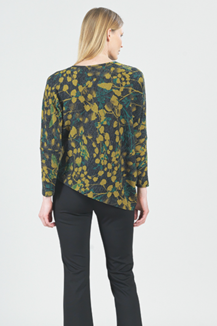 We're extending the olive branch, so don't let our Olive Leaf Cozy Texture Half & Half Sleeve Sweater Top! This sweater features a round neckline, left dolman sleeve, and fuller right batwing sleeve both in 3/4 length, with an angled hemline.
