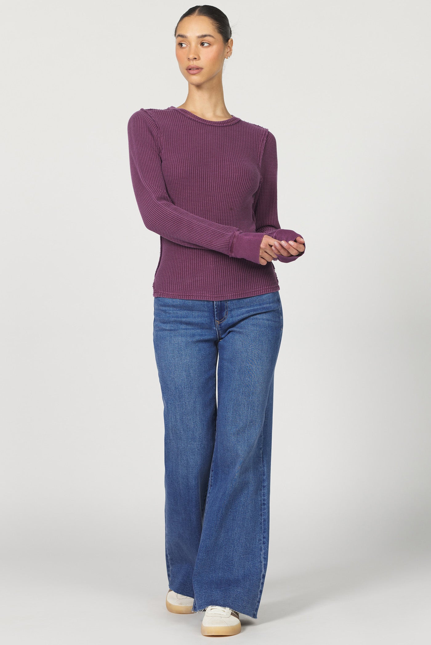 Crew neck, long sleeve waffle top. Great top, comfort fit. Pairs well with your favorite jenas.