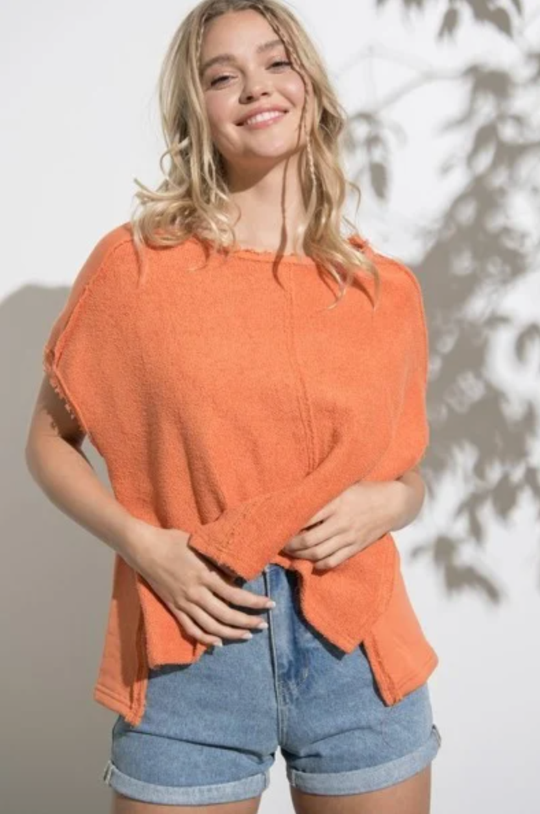 This papaya raw stitch vest is a great casual look for summer. Orange is THE color of the summer and this is a great staple.
