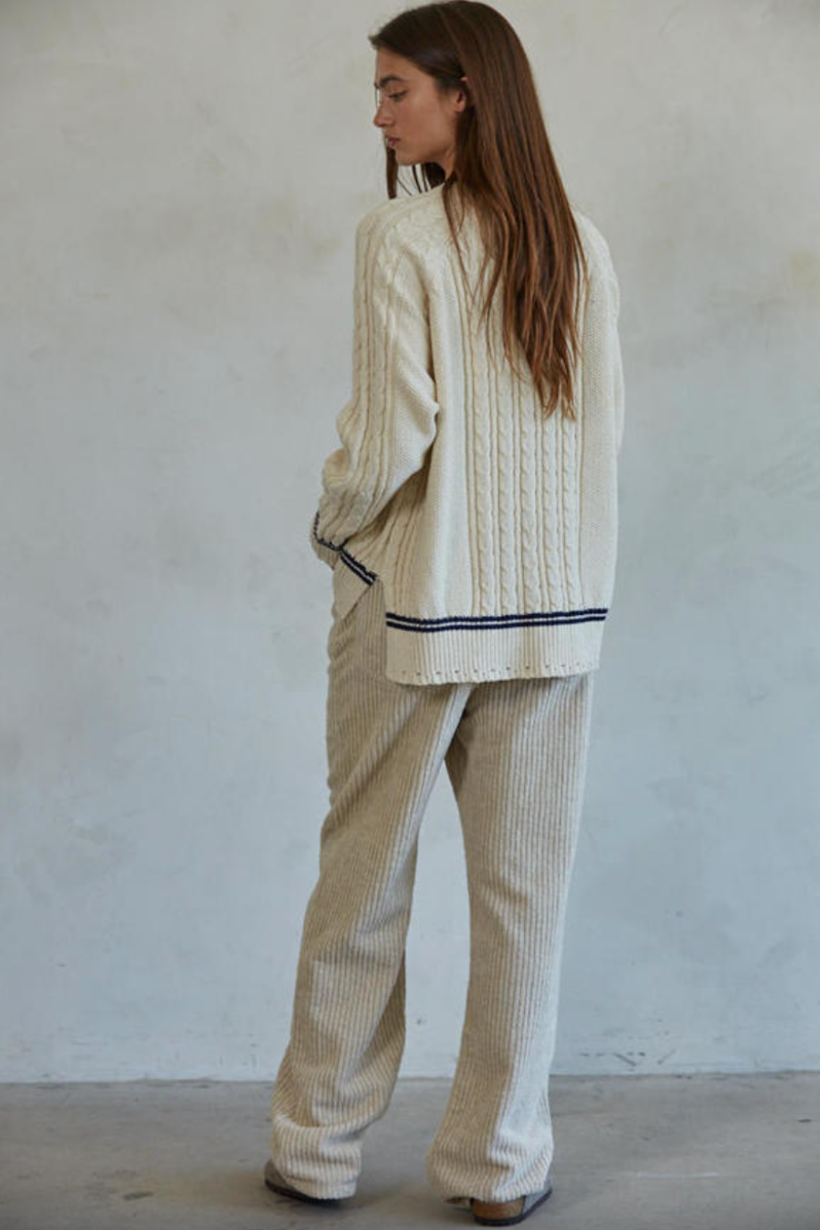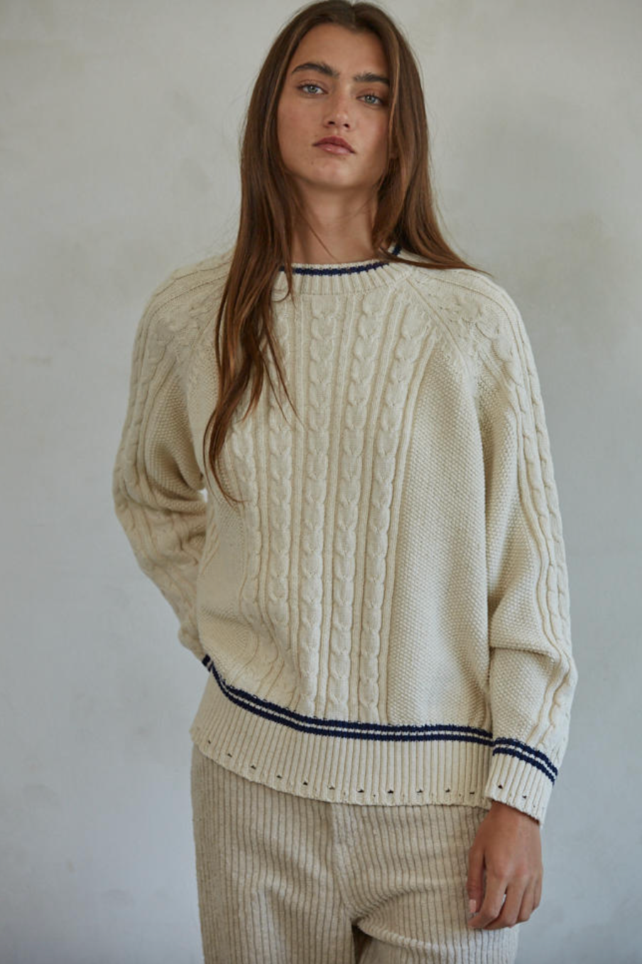 Knit Sweater Cotton Acrylic Viscose Linen Cable Crew Neck Long Sleeve Pullover Top