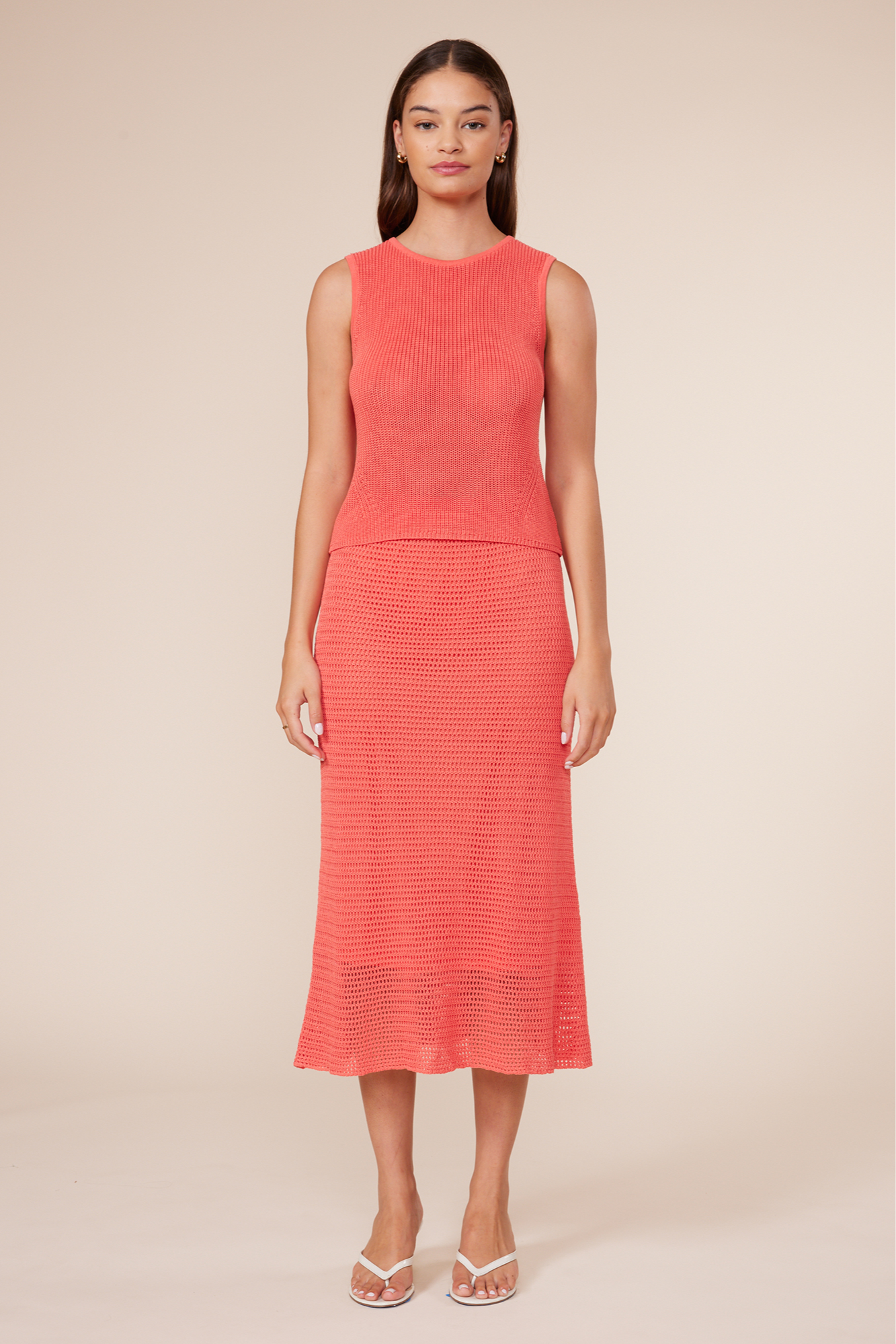 We love the knit on this skirt. Elastic waist, liner. Pair with style # SW897 or a simple fitted top.