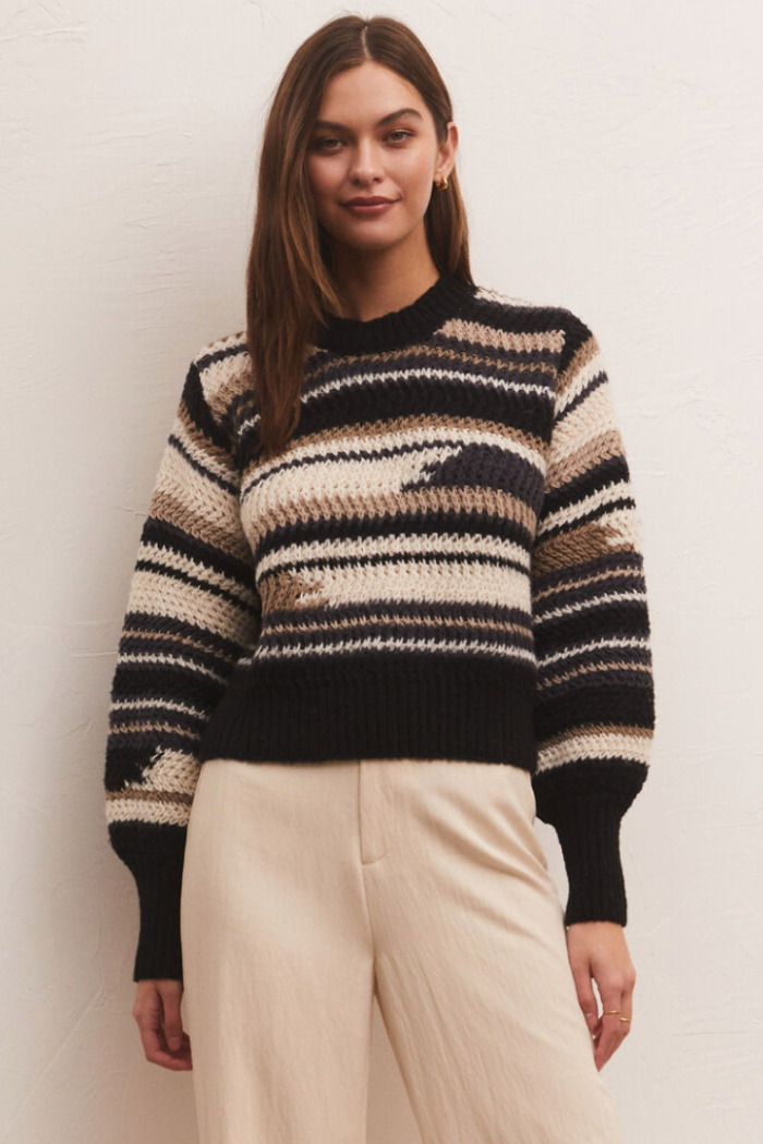 This trendy stripe sweater will look very fashionable in the winter! Paired with jeans and your favorite boots and you have a great outfit for the cold weather.