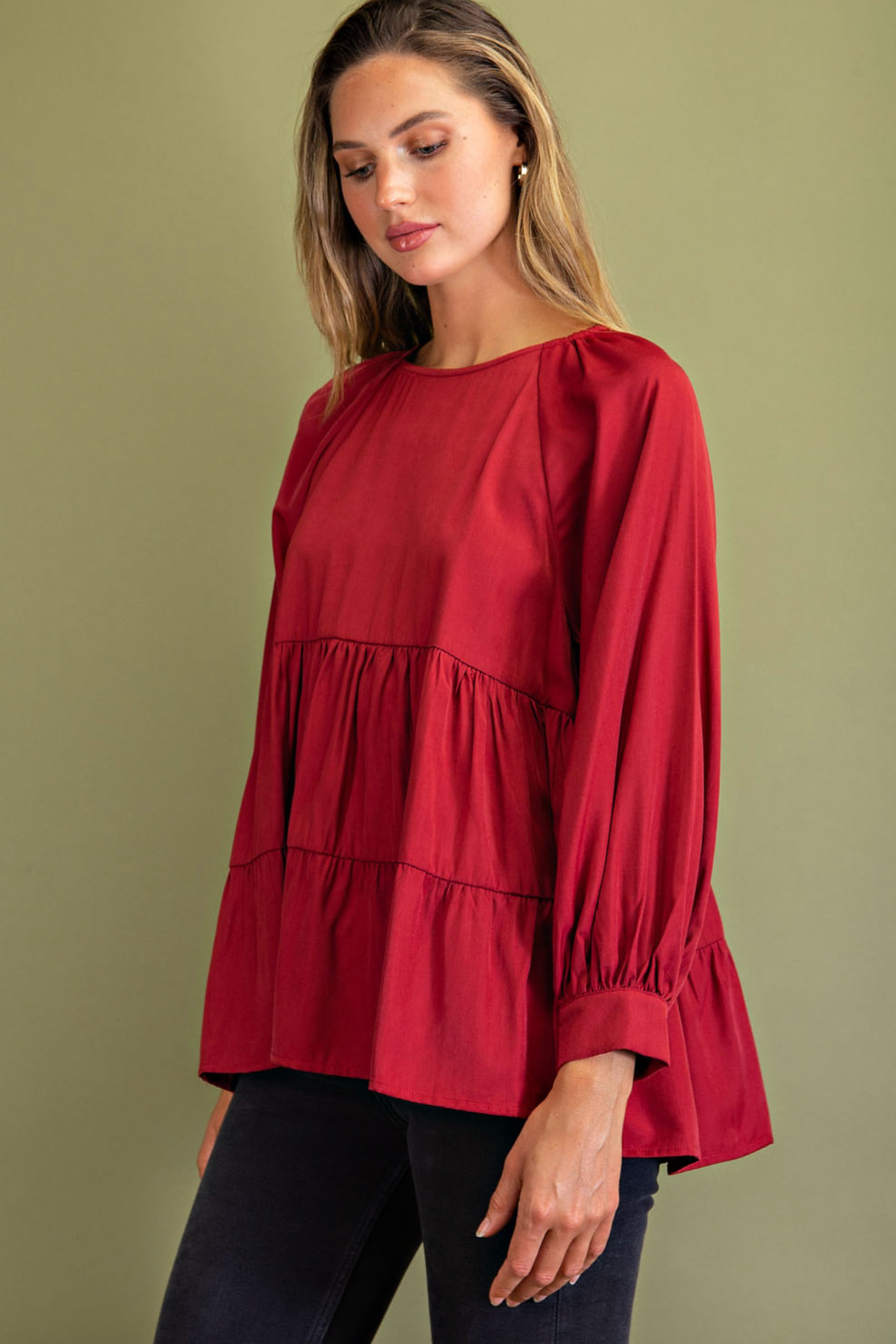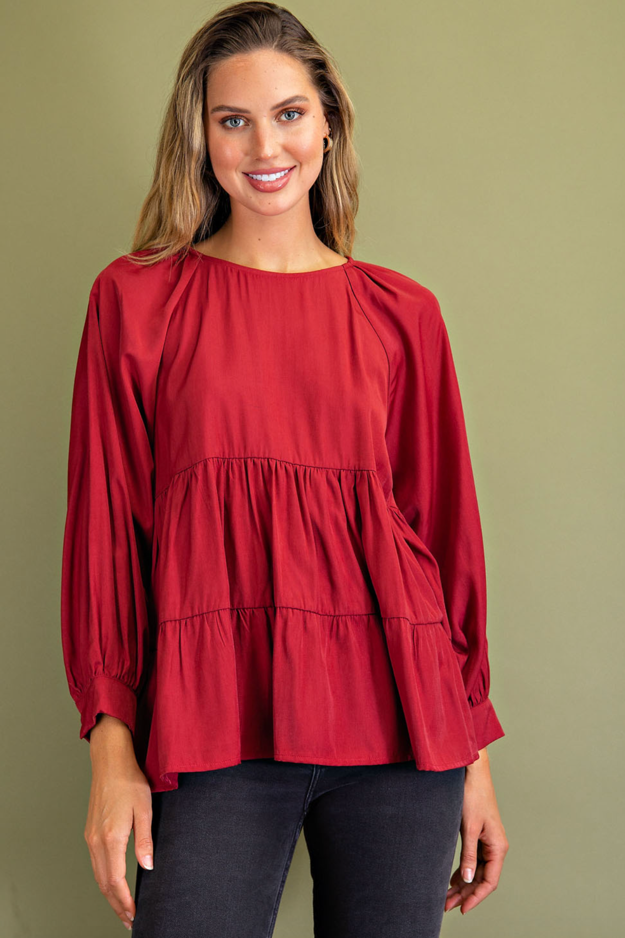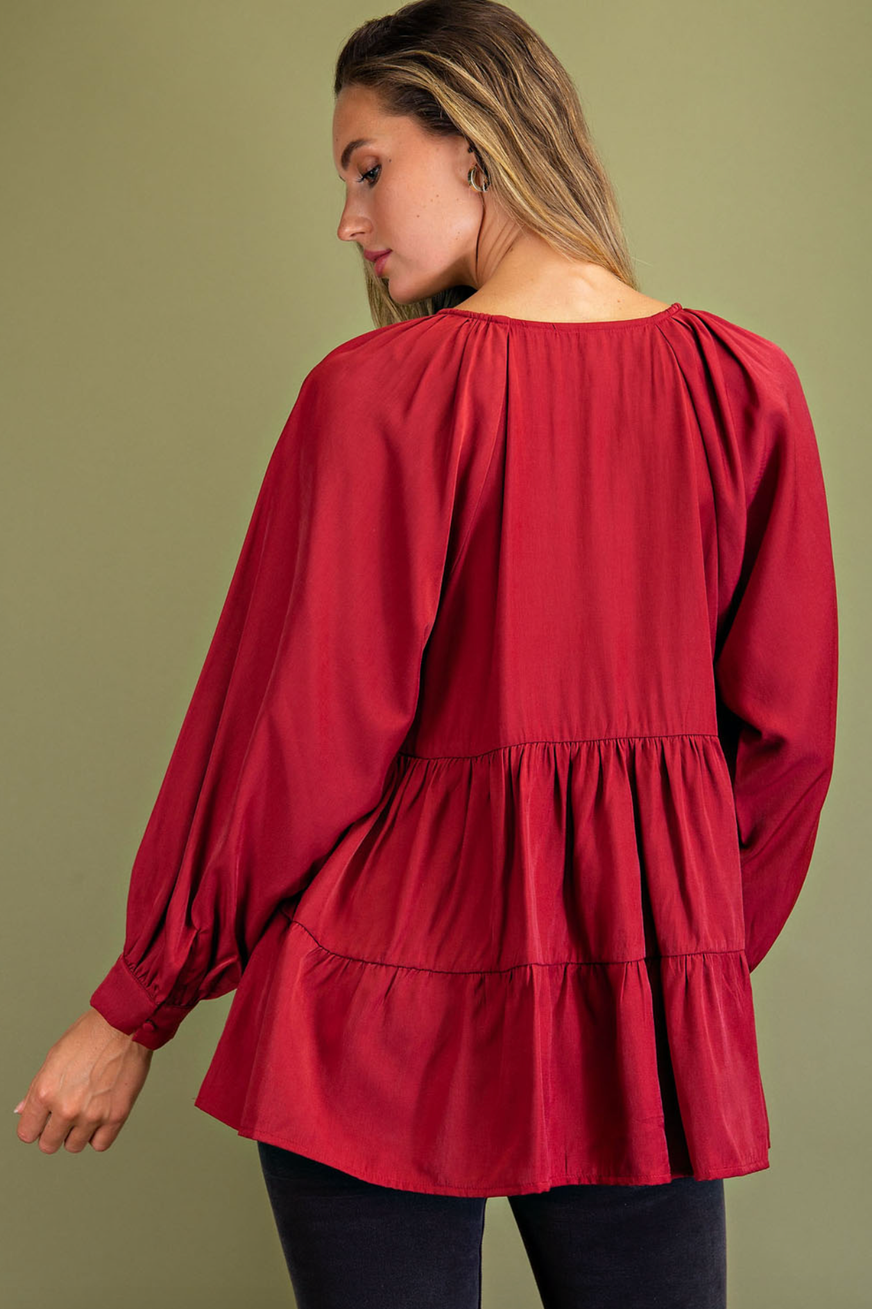 Babydoll style top is super trendy and this is easy to wear and flattering on everyone. Great for fall.