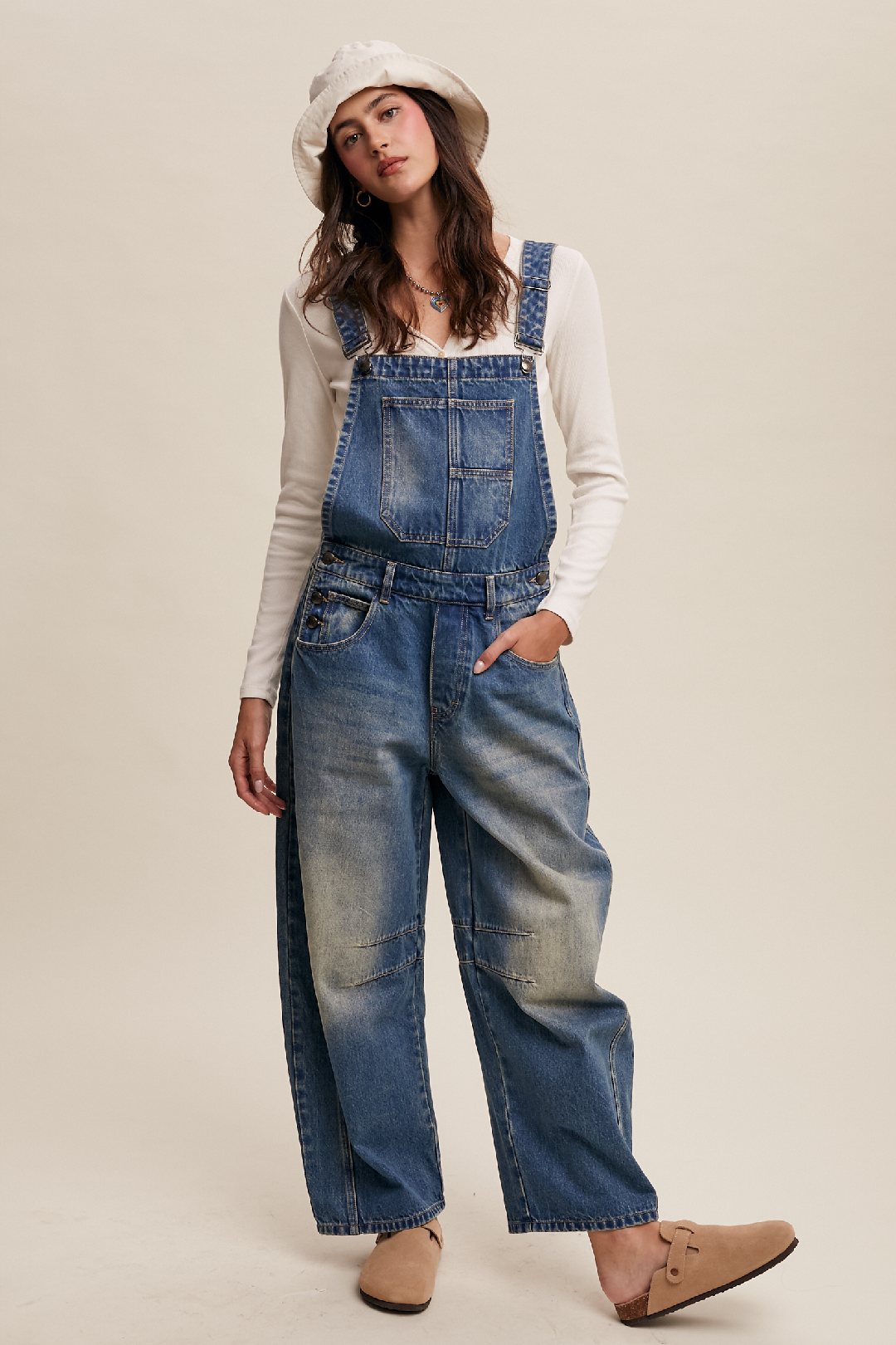- Model is 5' 7.5" 33-24-34 and wearing a size Small A perfect blend of vintage charm and modern utility, these barrel jean overalls provide a relaxed yet structured fit, making them a versatile addition to any wardrobe.