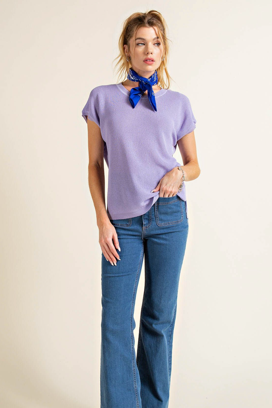 This basic knit top is an easy summer layering piece. Looks great with a white bottom and can be worn casually or dressed up for a dinner out.