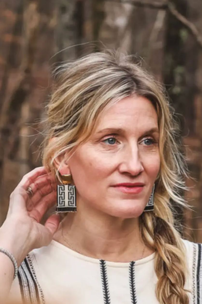 These earrings are handwoven by women artisans in Medellin, Colombia who receive fair working conditions and compensation for their skills.