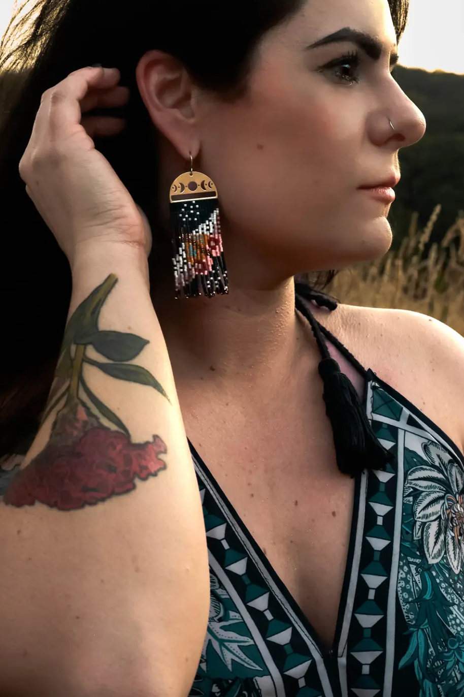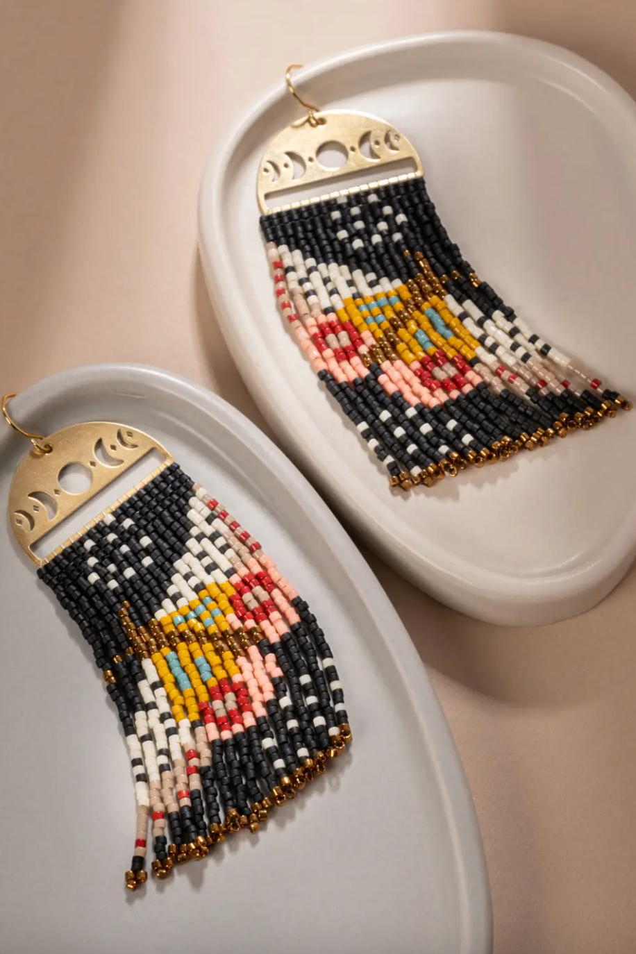Beaded Handwoven Moonlit Moth Fringe Earring