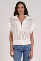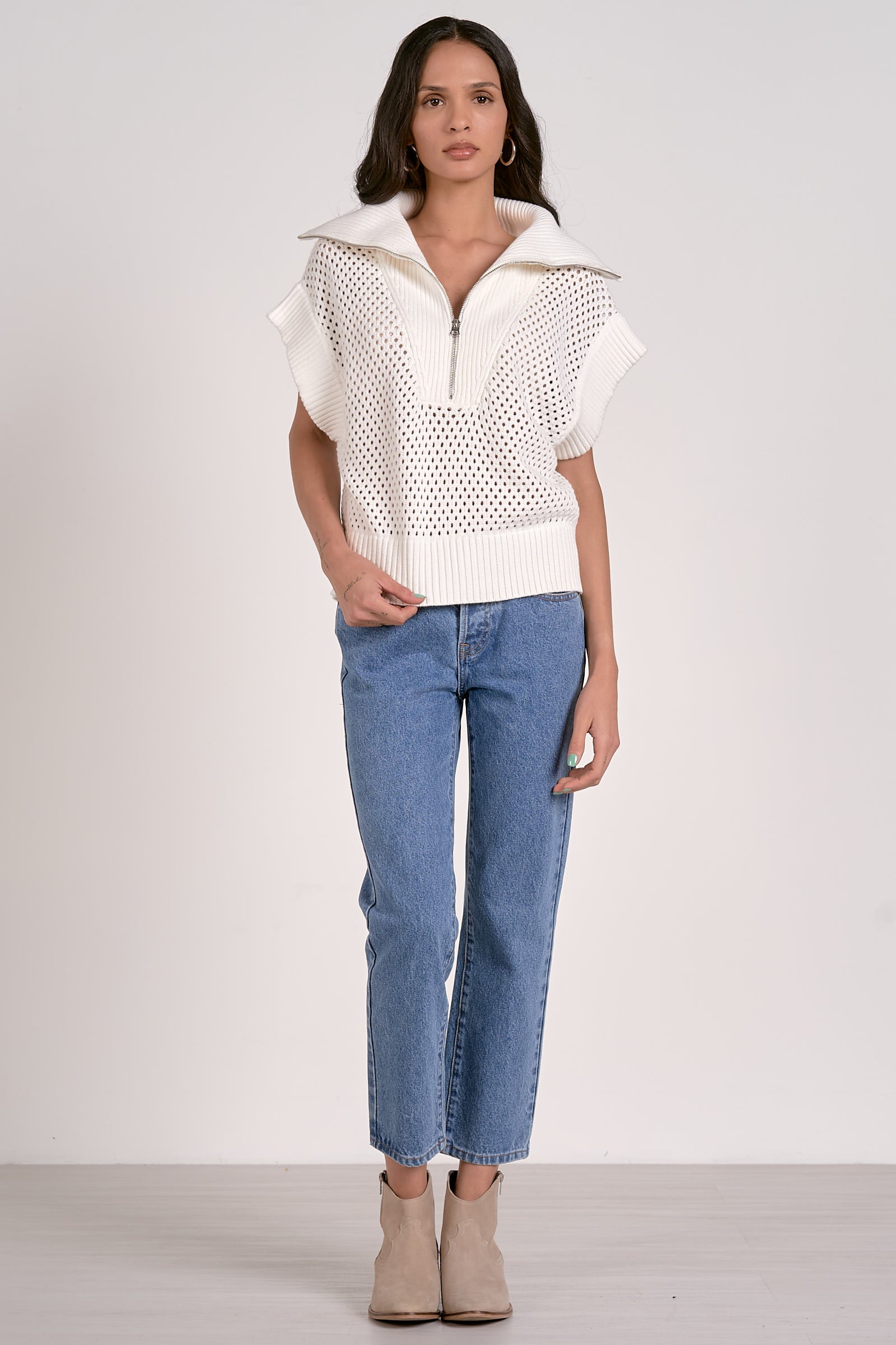 We love this over sized collar with matching waist band and sleeve. The 1/4 zip makes it a relaxed versatile option. Pair with jeans.