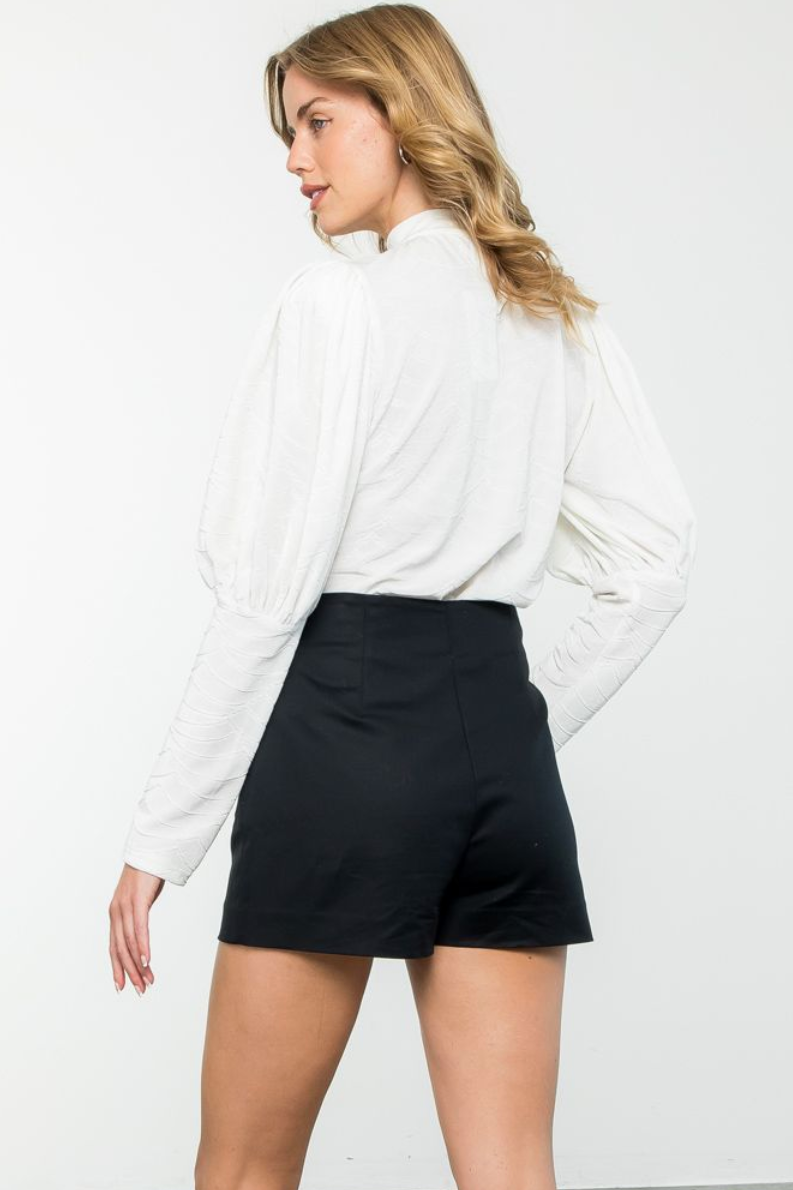 These bishops sleeves set this velvet top can be worn with both jeans or pants. Heels or low boots.