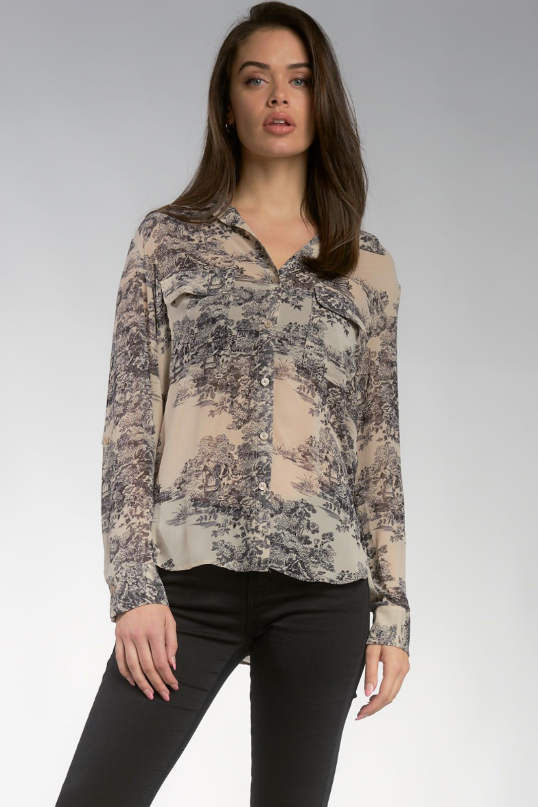 This printed long sleeve blouse is great for a dinner out paired with dark denim or black jean.