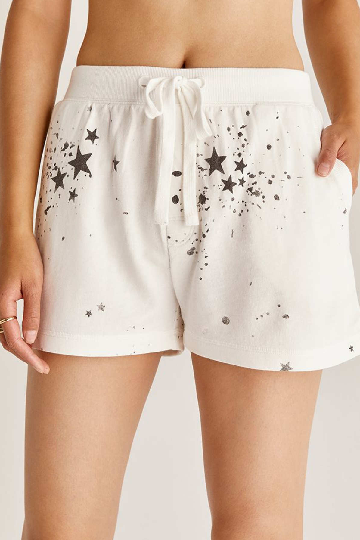 The Bronco Splatter Star Short will be your customers' new favorite. She will feel like a superstar with the Splatter Star print, ribbed drawstring waistband, and side pockets that give these shorts easy comfort and fit.