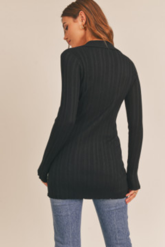 Collar, midriff buttons, fitted long cardigan. Pair with jeans wedge shoes or boots. Model wearing size small