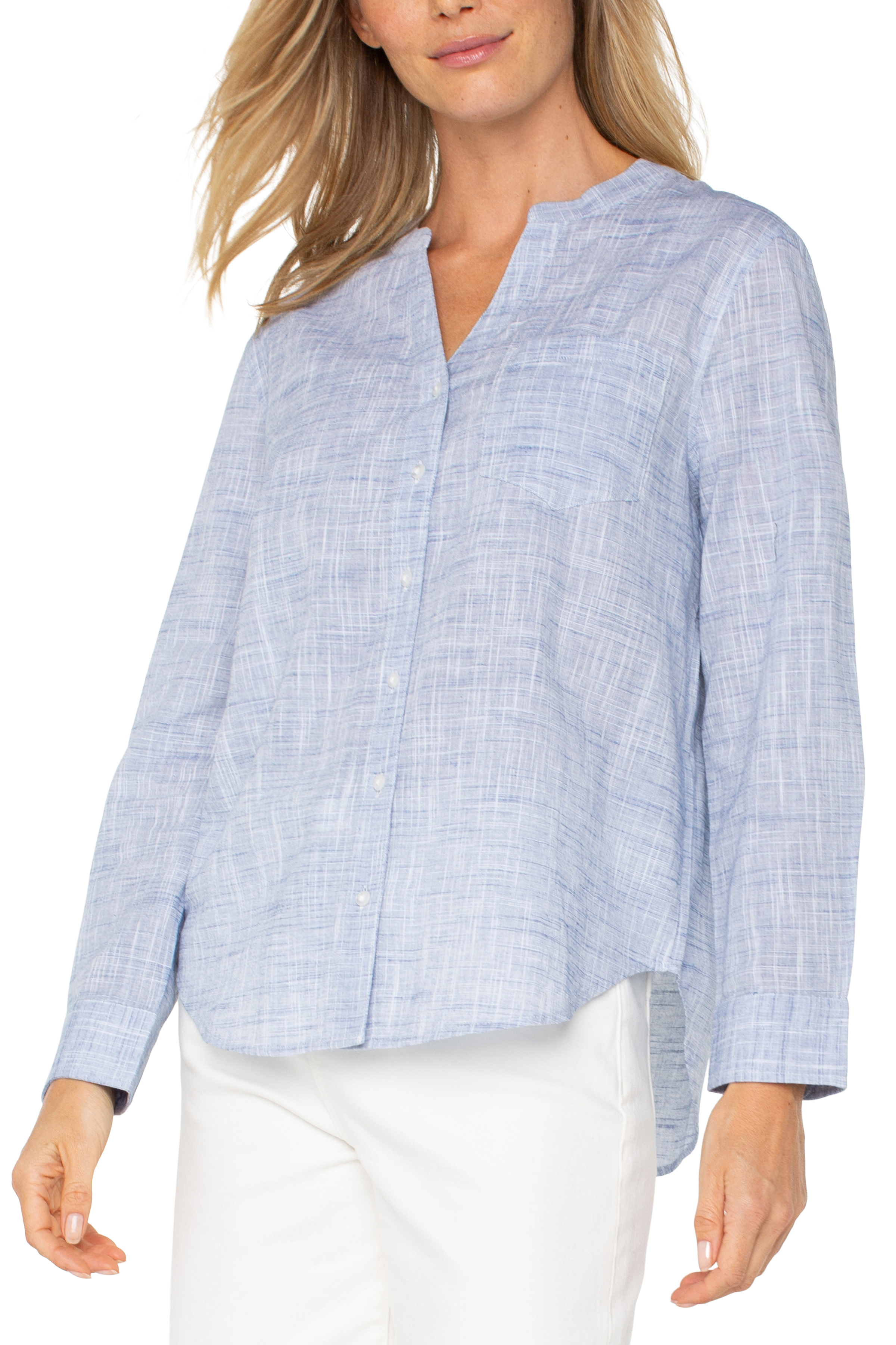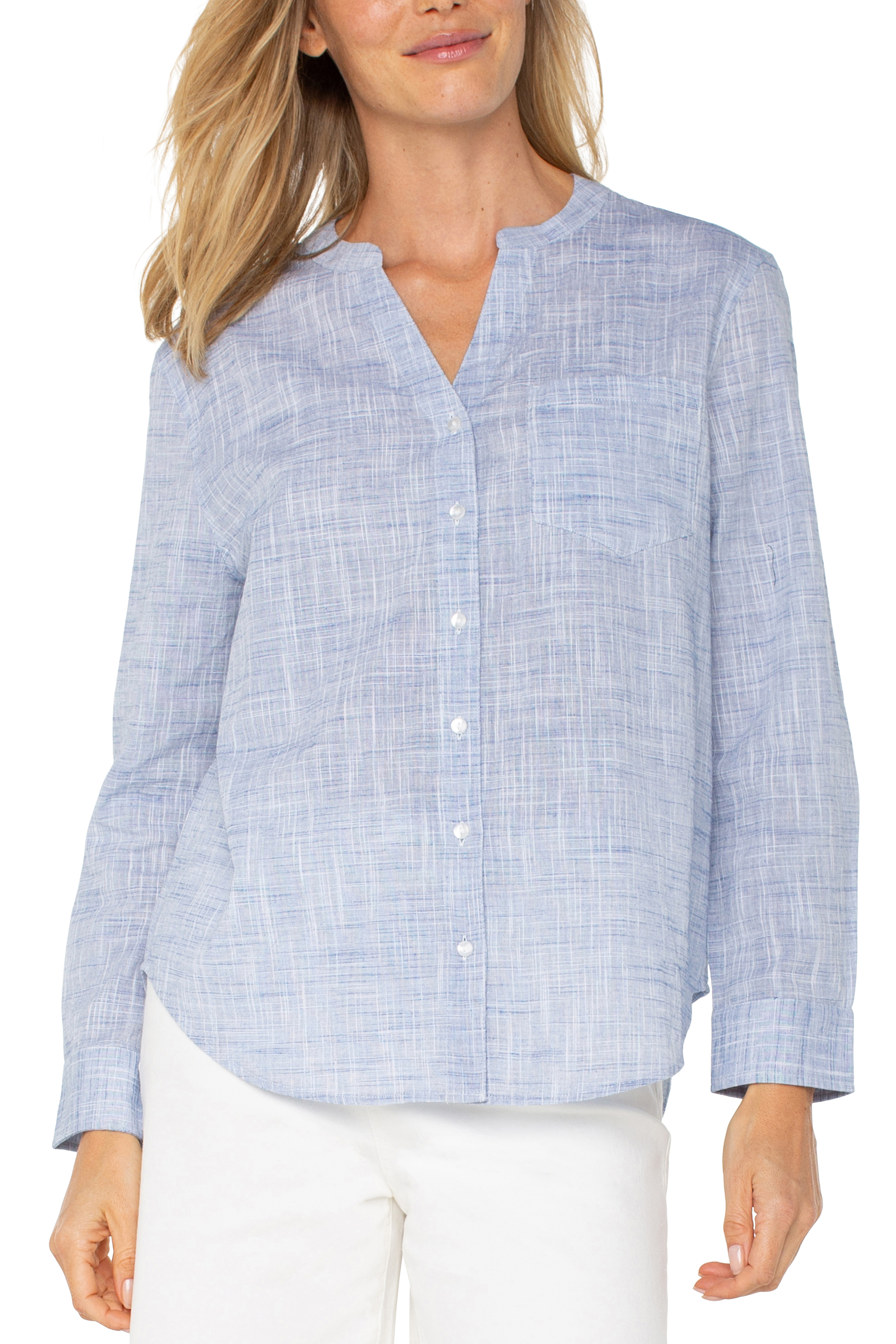 This classic button front woven shirt is here for the front lines of your wardrobe. Button up or leave open for a more casual throw on look. Pair as an extra over skirts or take it up a notch with dress pants.