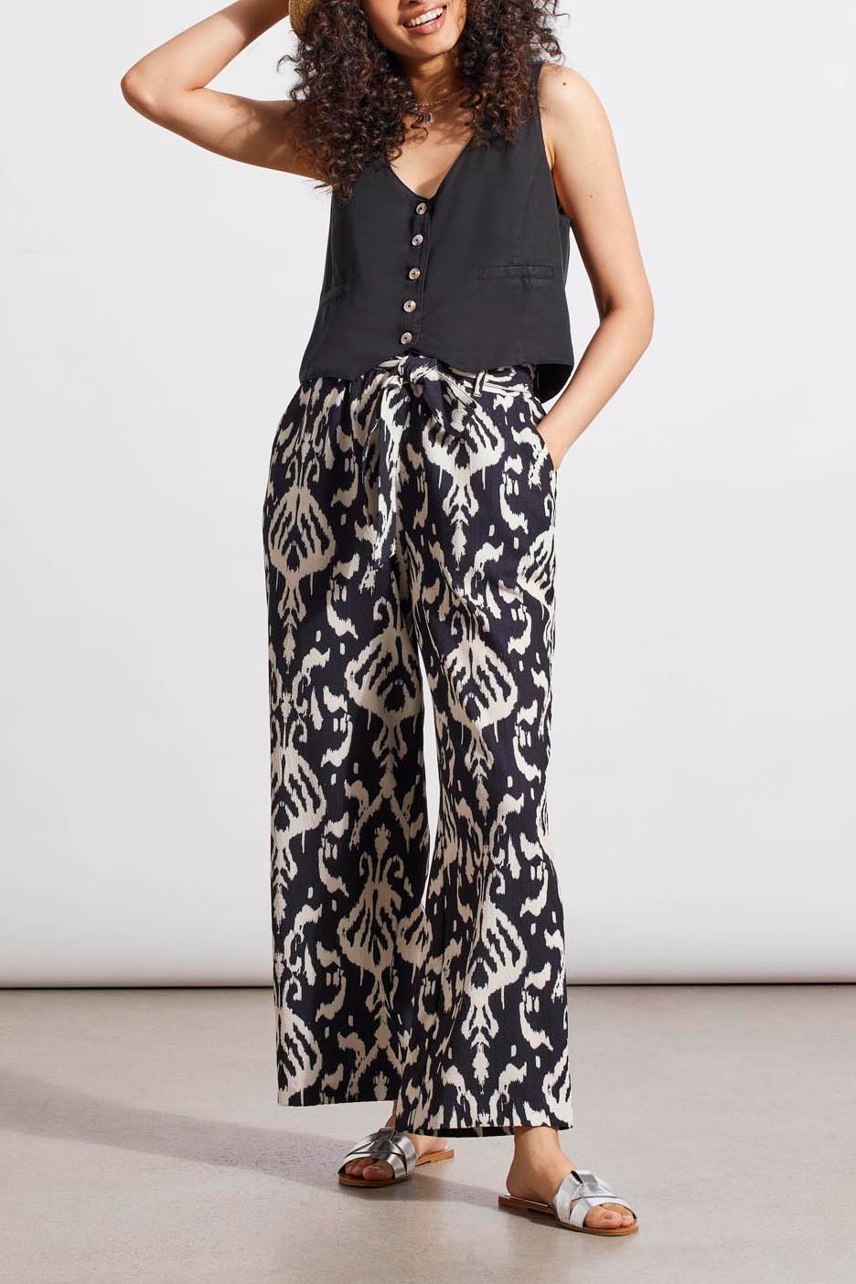 This button front vest is fun to pair. Style with our pull on ankle belted pant # 12290-3693 or jeans.