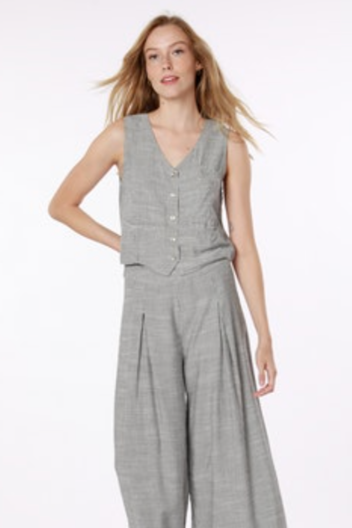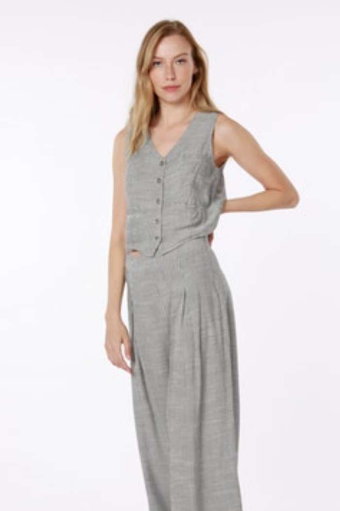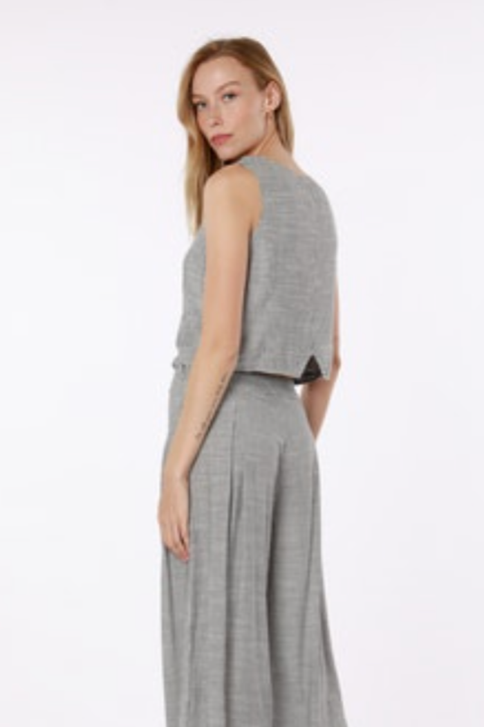 This button up vest looks great with the matching bottoms. It makes a great casual outfit that looks really fancy. Or you can pair the top with jeans and be casual with a pair of sneakers.