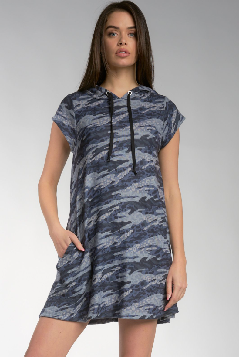 Camo T-shirt Dress with Hood