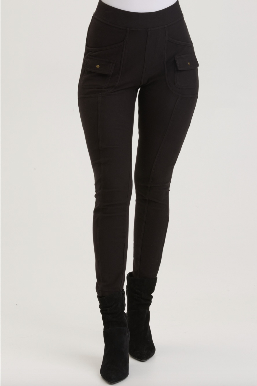 Slim, trimmed and stunning; the Caraf Legging features mini pockets atop front side pockets and slimming style lines in our stretchy comfy knit.