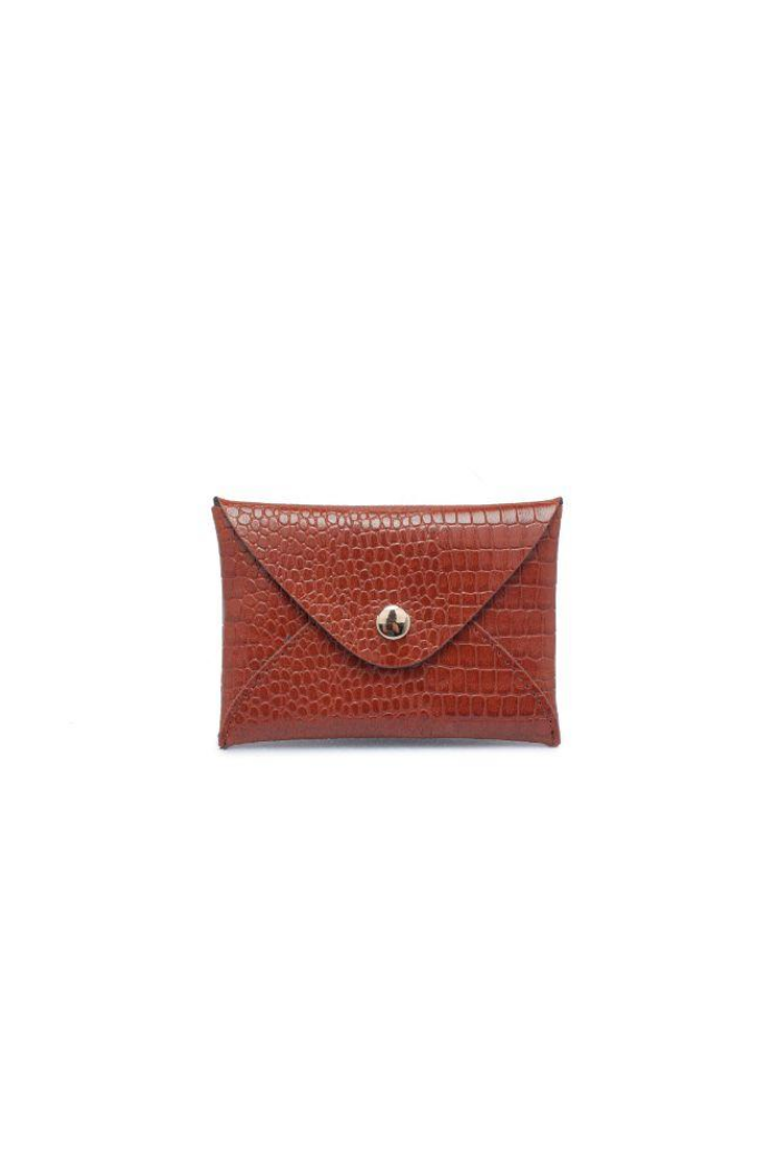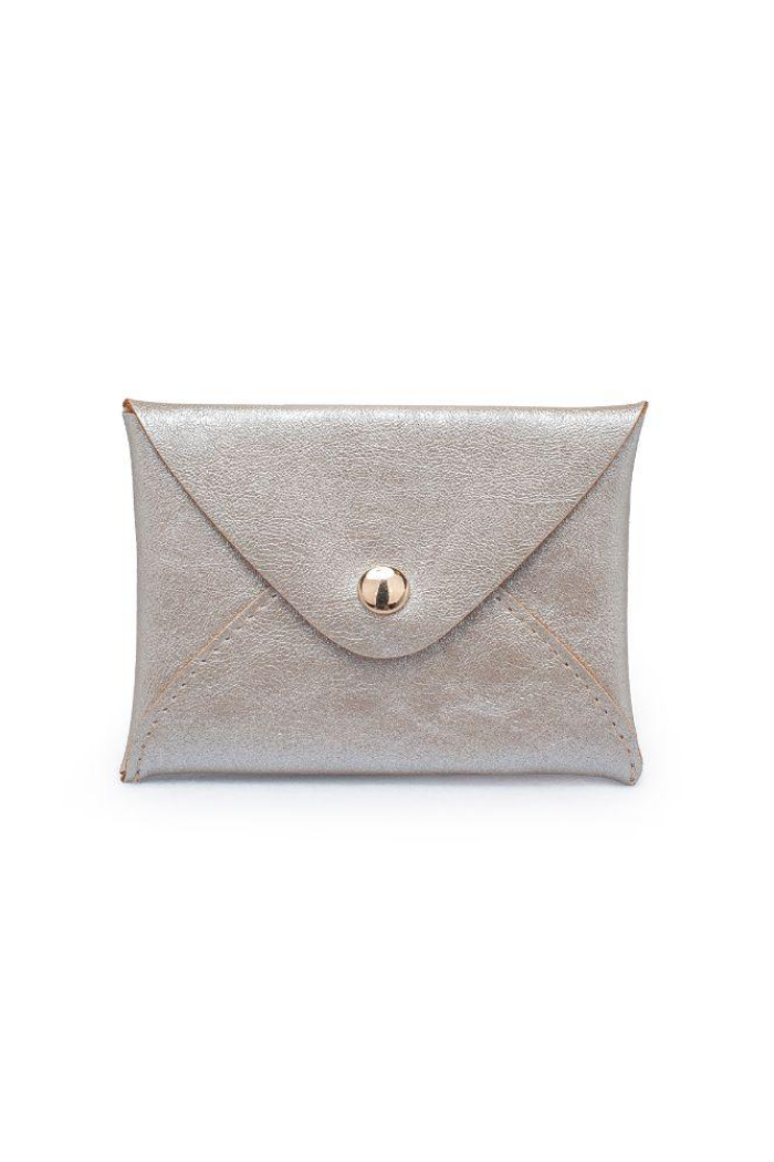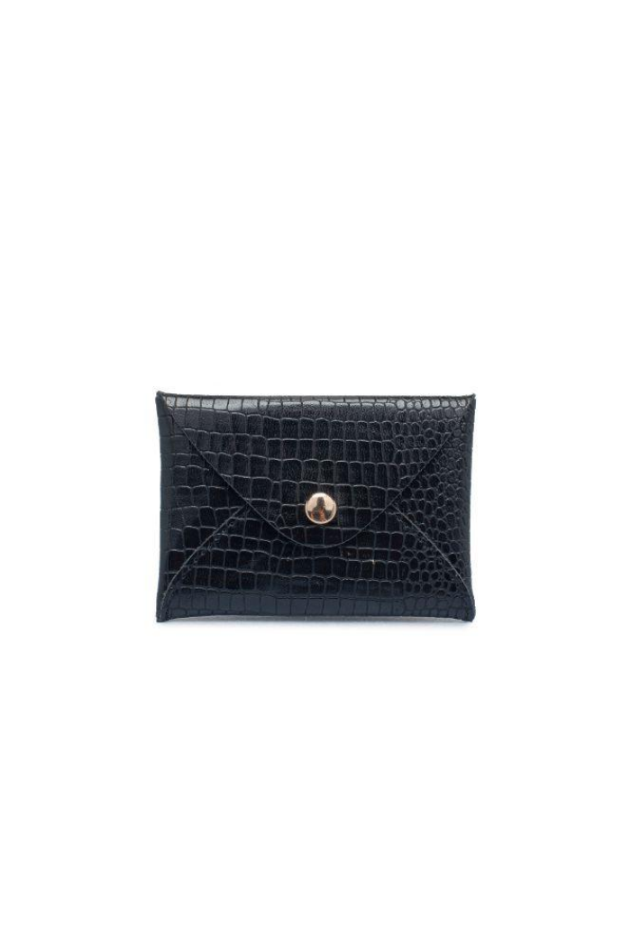 Hold your cards in style with the unique Sia cardholder. More than your average cardholder, the Sia is made of vegan leather and has a snap closure. Its exterior envelope stye and diagonal front stitching make this cardholder the season’s absolute must-have. Why settle with a dull and boring cardholder when you can have the Sia?