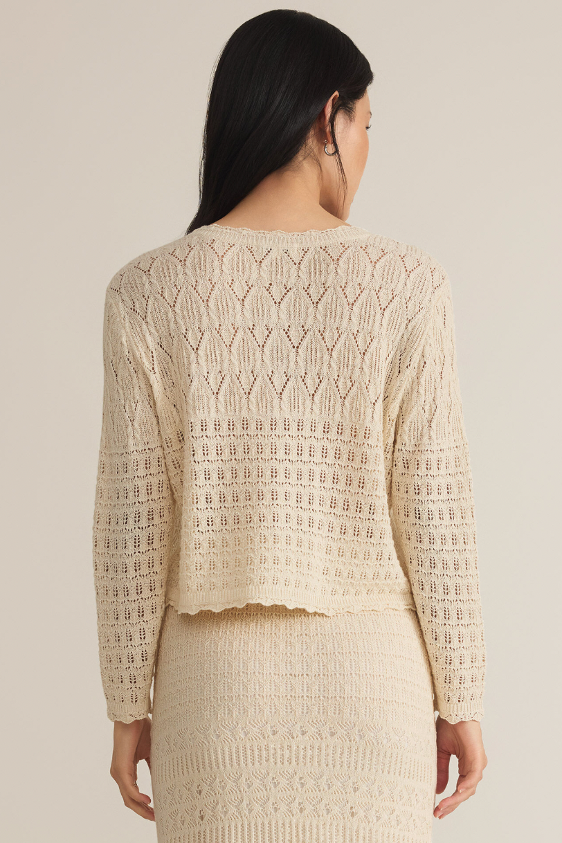The Cardi Crochet Top has a delicate and intricate design that is eye-catching. This top has a scalloped hem, adding a feminine and vintage-inspired touch. A versatile top that can layered over a tank or bralette for a stylish, effortless outfit.